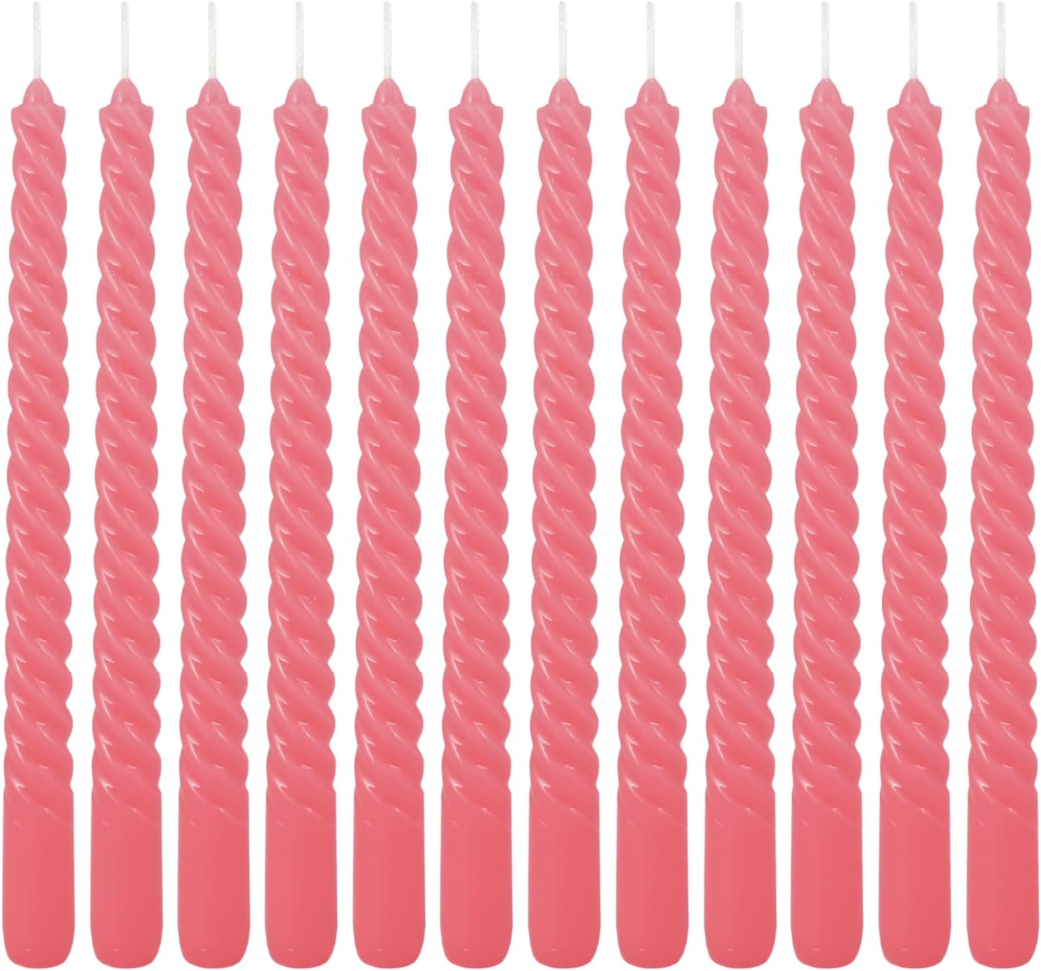 12-Pack Pink Spiral Taper Candles – 10 Inch Elegant Dripless & 10-Hour Burn – Long-Lasting Decorative Candles for Weddings, Birthdays, Parties, Church, Home Decor & Romantic Dinners