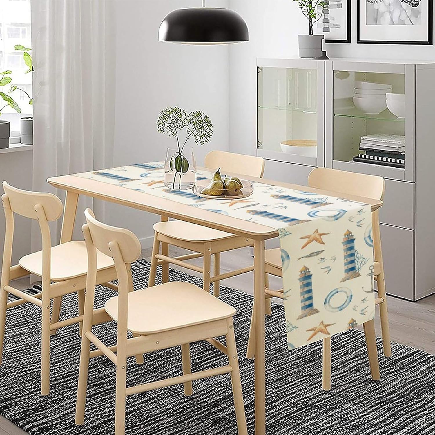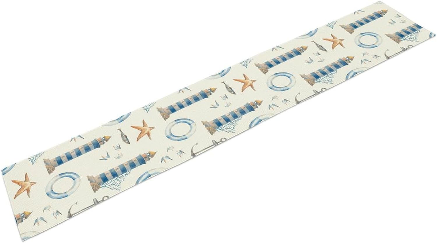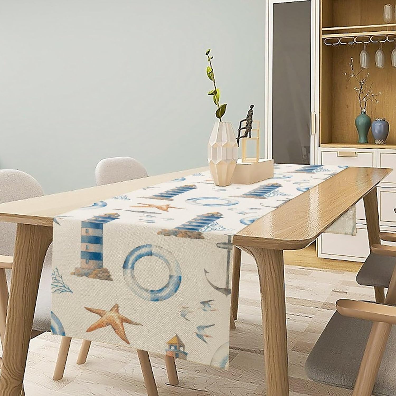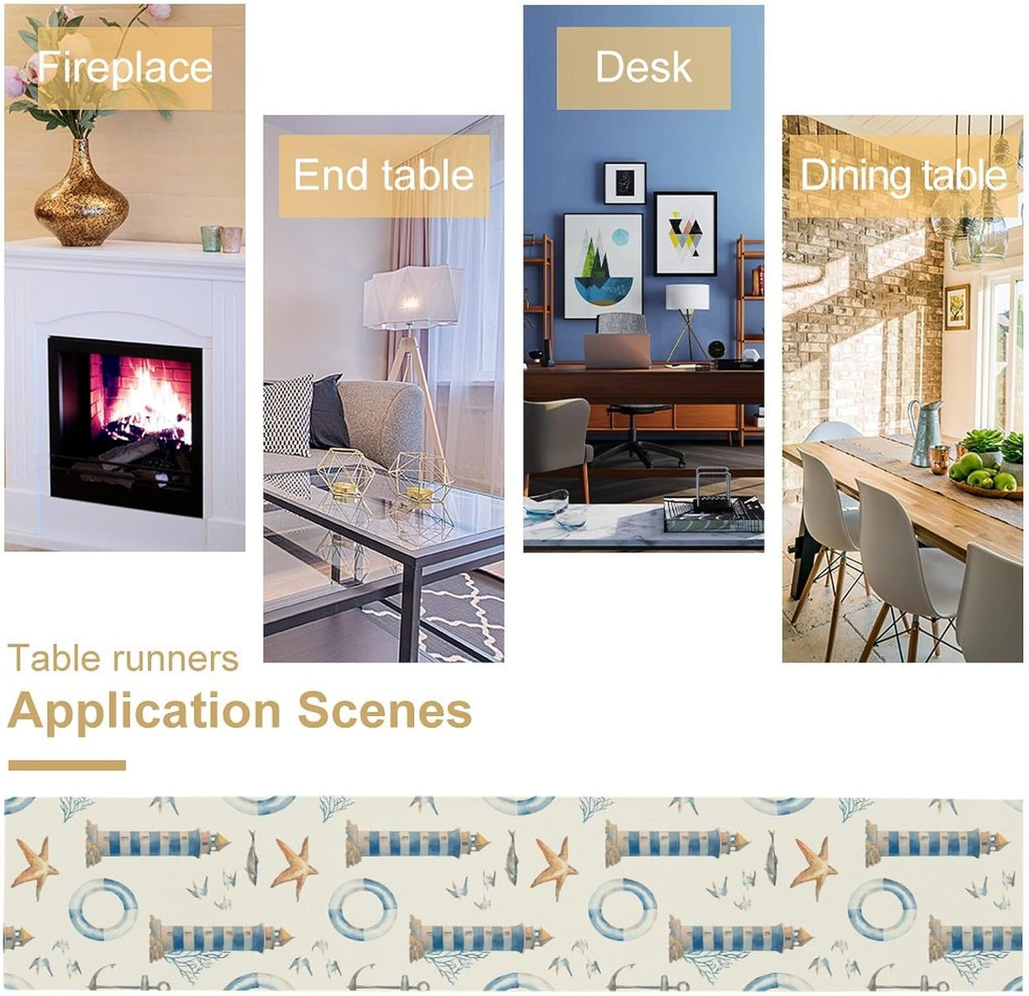 Blue Beach Table Runner, Tropical Ocean Coast Table Runner, Seashell Seasonal Nautical Restaurant Coffee Table Decorations for Home Holiday Party Indoor Outdoor 13x120 Inch