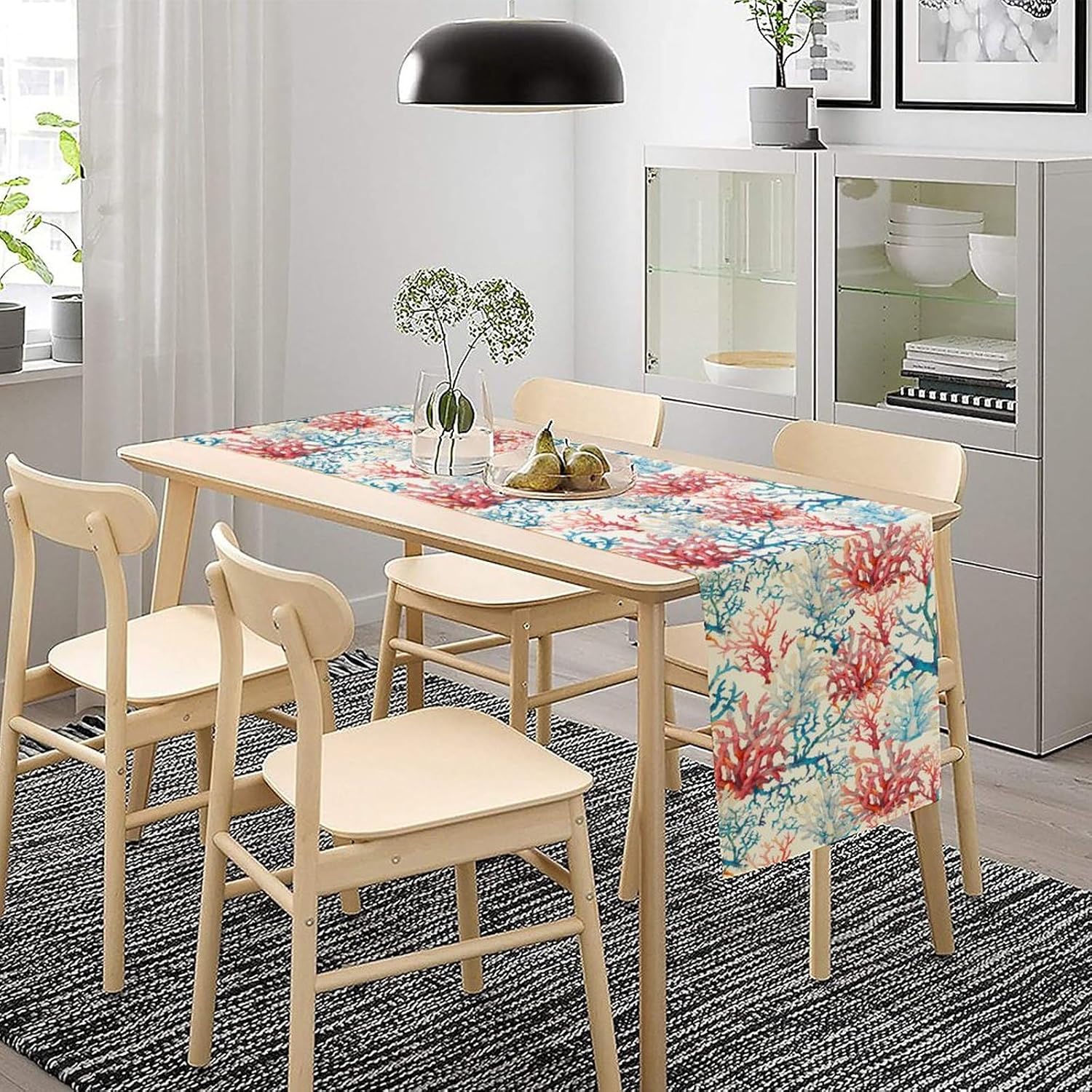 Blue Beach Table Runner, Tropical Ocean Coast Table Runner, Seashell Seasonal Nautical Restaurant Coffee Table Decorations for Home Holiday Party Indoor Outdoor 13x60 Inch