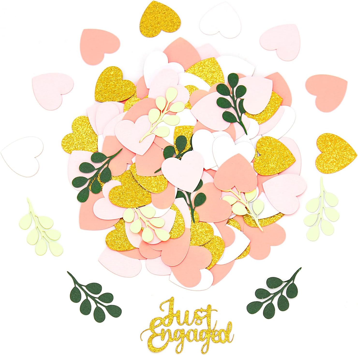 - 5.Proper Size and Premium Material.The heart confetti width 0.98inch,the sage leaves 1.5inch width,the just engaged letter 2inch width,looks perfect with premium fresh color papercard,adding a charming and energetic sense to your party table decorations.