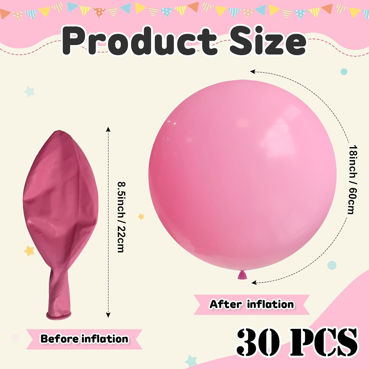- 【Size& Quantity】Each sets contains 30pcs 18 inch large light pink balloons. Big balloons are safe, heavy thick, bouncy and Eco-friendly latex material which is durable and long-lasting quality, these big round balloons thicker and much strong than typical balloons for longer lasting fun.