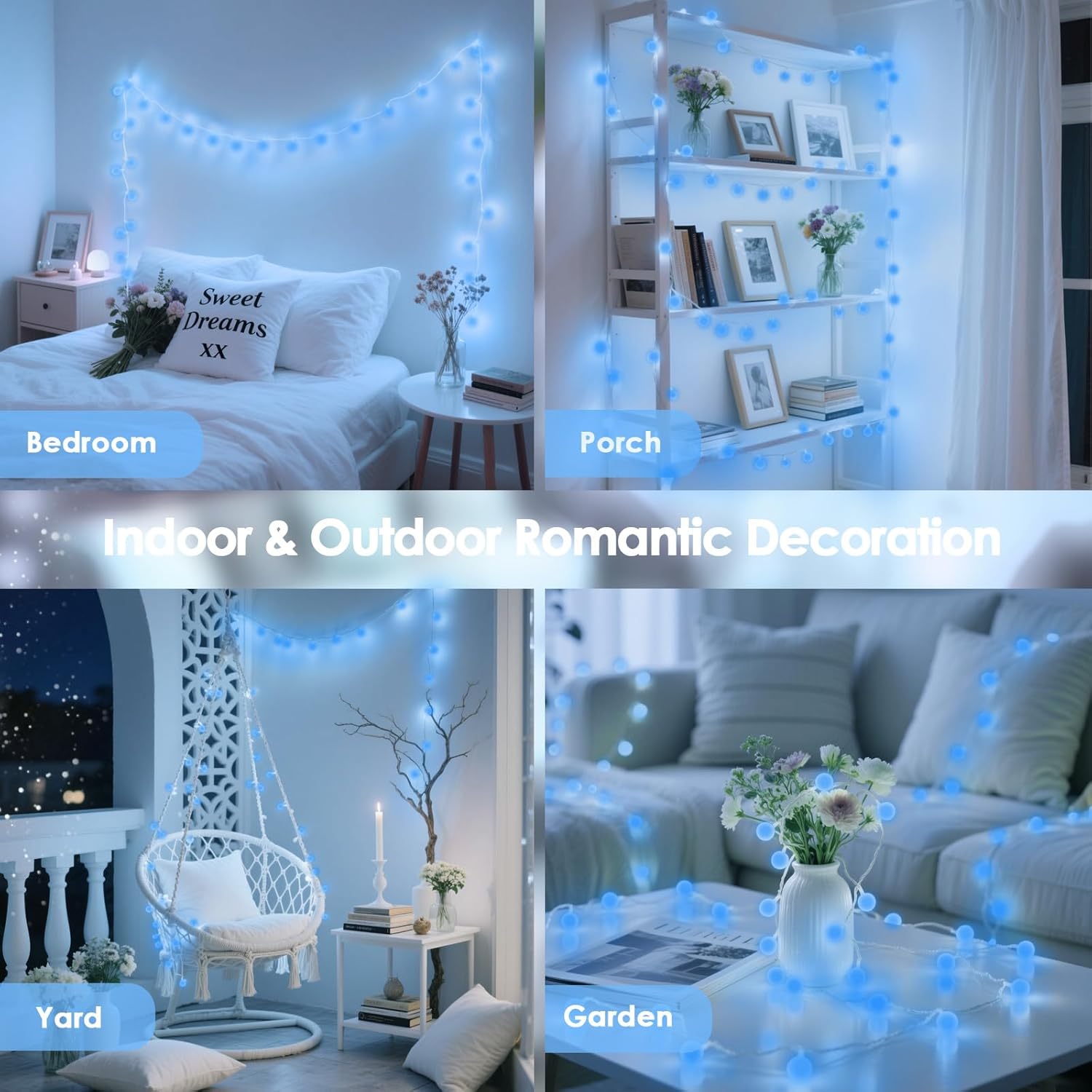 100LED Blue Connectable String Lights Indoor Outdoor for Bedroom, 43ft Fairy Lights with Remote & Timer, Plug in 8 Modes Waterproof Globe Hanging Light for Room Classroom Wedding Party Christmas Decor