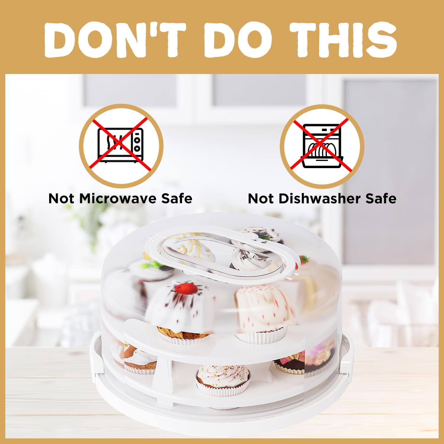 - Holds 14 Standard Cupcakes Securely - Fits two dozen regular-sized cupcakes in two stackable tiers. No more messy transfers!