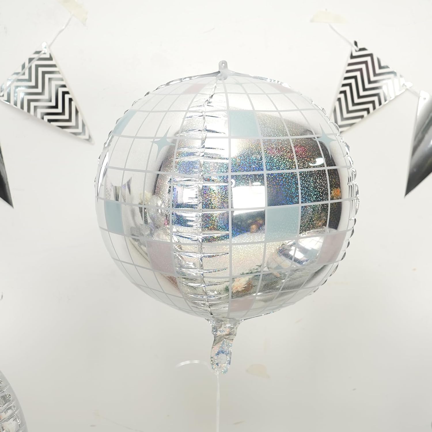 - MATERIAL:Our 22inch silver giant 4d disco ball balloons are with neat edges,not easy to explode and leak,non-toxic,with vibrant colours,Combine them with complementary décor for an eye-catching setup.
