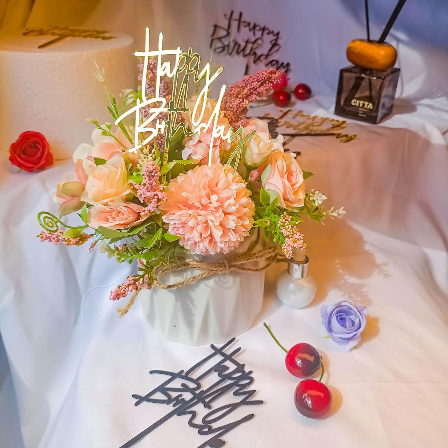 - 🎉 【Wide application】Whether it's a party for men, women, or unisex, this cake decoration can add a touch of shimmer to birthday, or special occasion cakes, cupcakes, dessert tables, fruit bowls, and floral arrangements