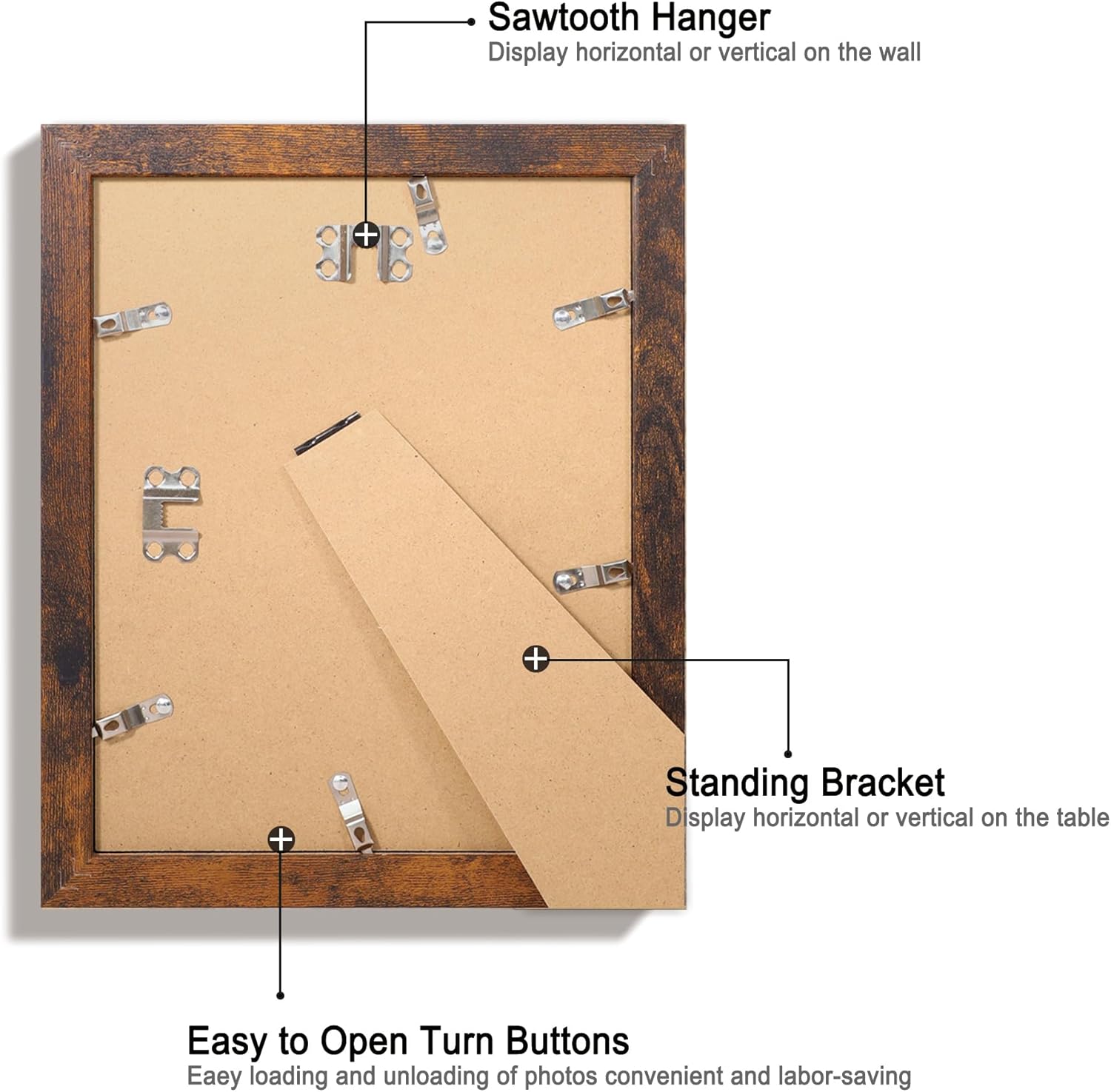 - Multi Frames Collage Set: Includes 4 frames in the same size. Perfectly fits 8.5x11 inch pictures without mat. The frame opening display size is 0.5 inches smaller than the photo size for secure mounting.