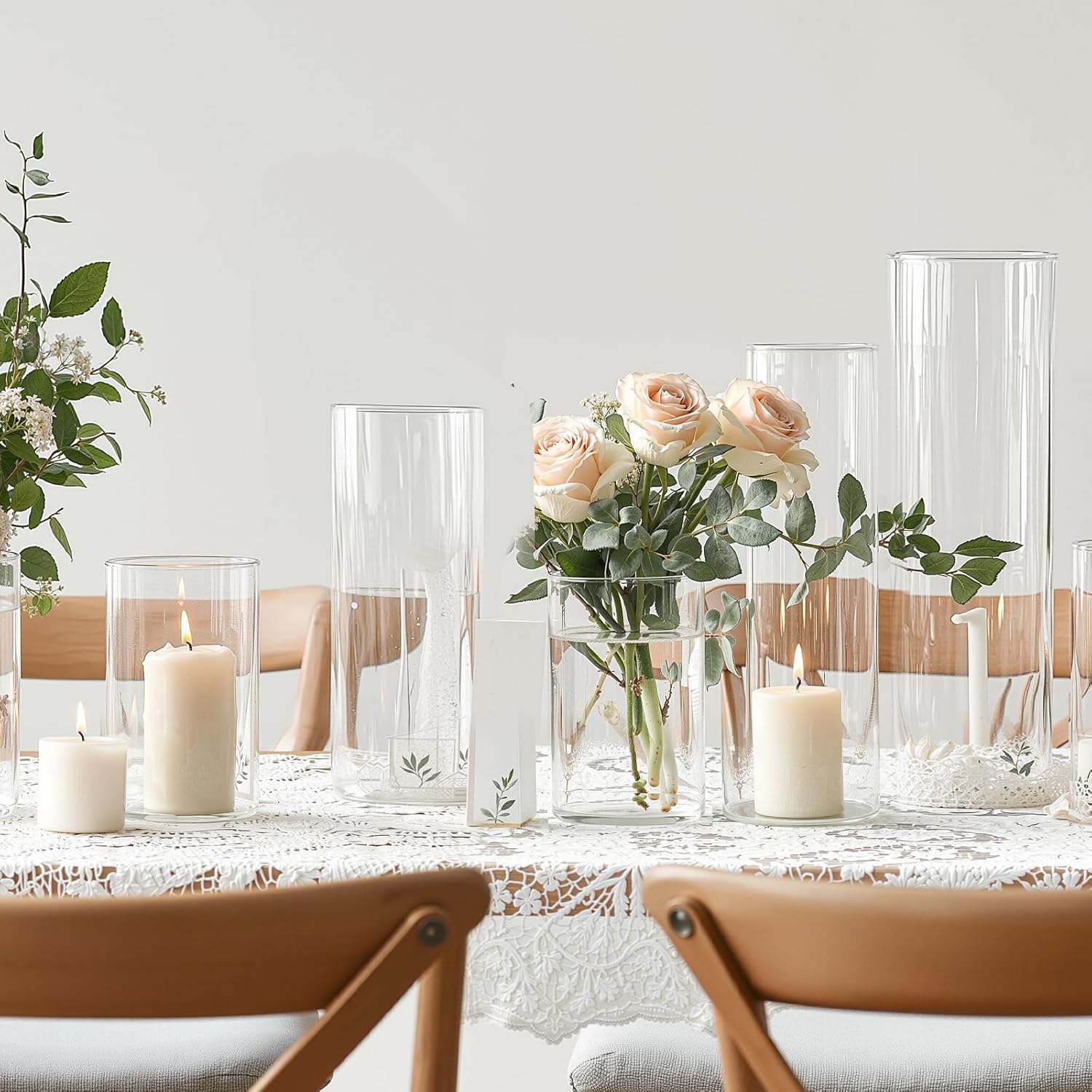 - Triple Elegance Glass Vase Set – Modern Centerpiece Essentials: Enhance your space with this versatile 3-piece set of cylinder vases (4”, 6”, 8” heights). Crafted from ultra-clear, glossy-coated tempered glass, these modern flower vases balance durability and refined sophistication. Their seamless transparency adapts to any decor style—Scandinavian, rustic, or industrial