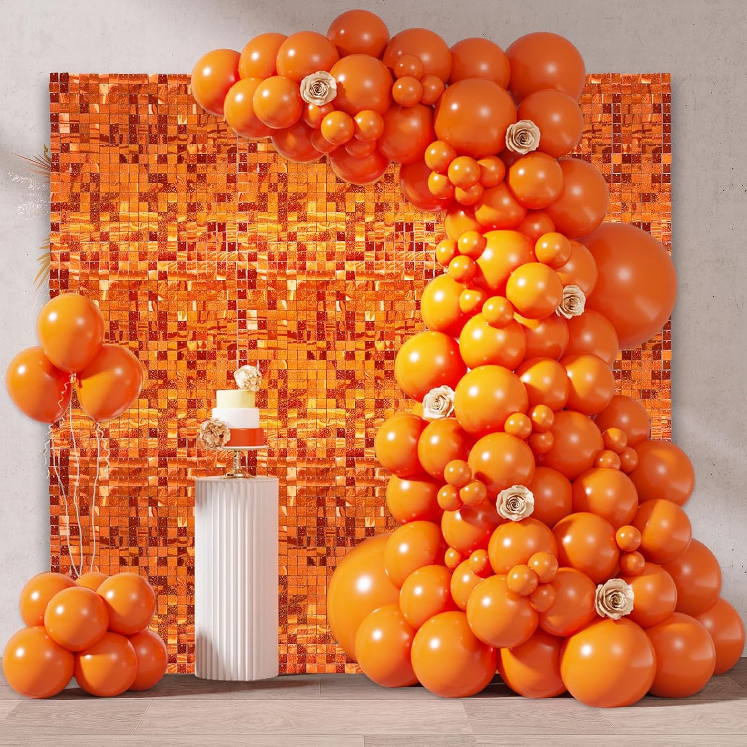 - 【Shimmer Wall Backdrops】The sequins of the orange laser glitter wall panels will move with the wind and sparkle when the light hits them. You can match it with any balloon, wall, outdoor or indoor backdrop to a fantastic shiny photo backdrop, creating a nice shiny atmosphere for your party.