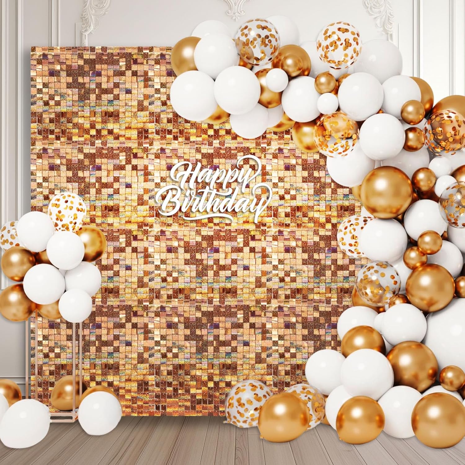 - 【Shimmer Wall Backdrops】The sequins of the champagne laser glitter wall panels will move with the wind and sparkle when the light hits them. You can match it with any balloon, wall, outdoor or indoor backdrop to a fantastic shiny photo backdrop, creating a nice shiny atmosphere for your party.