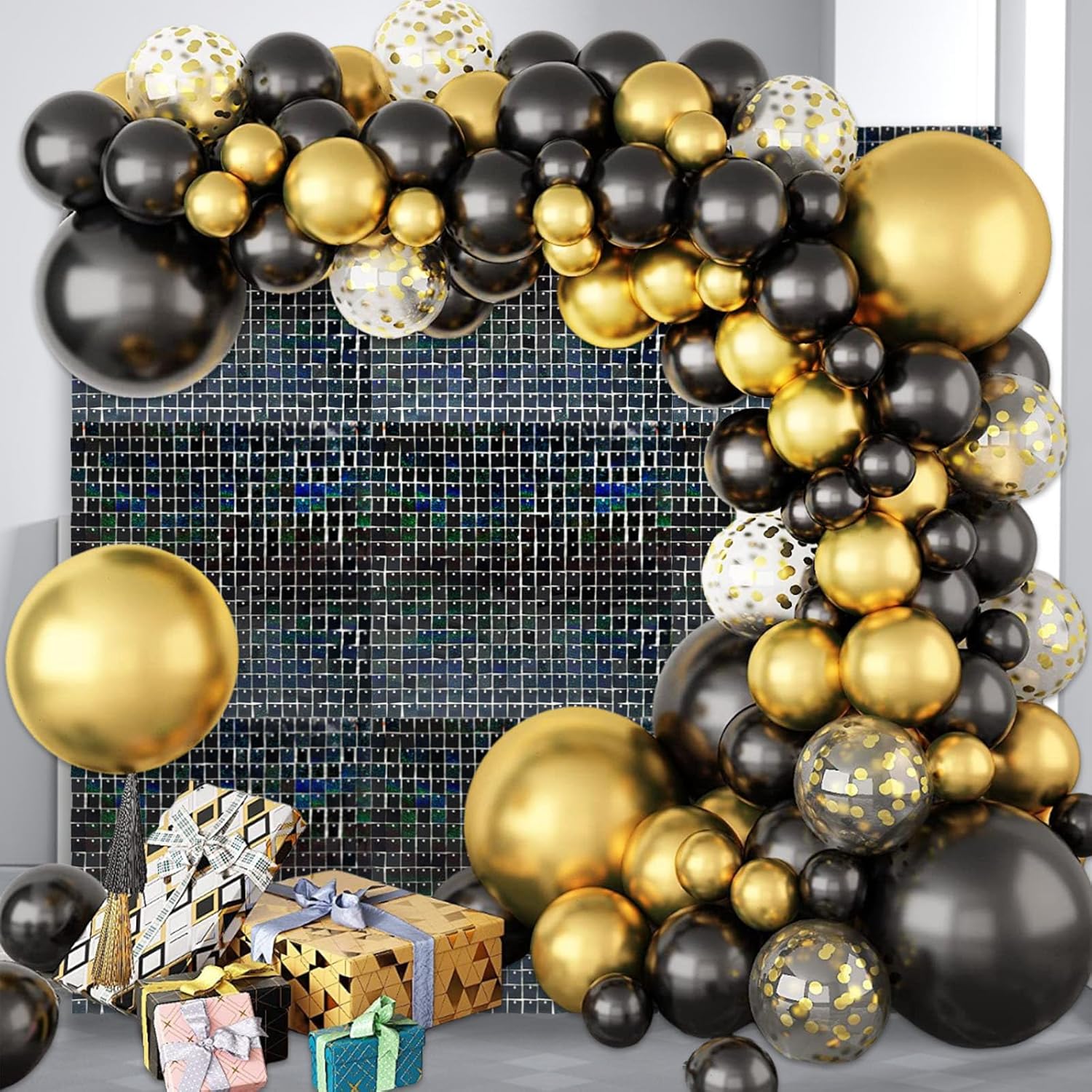 24PCS Black Shimmer Wall Backdrop, Laser Square Sequin Photo Backdrops Panel, Glitter Wall Background for Birthdays, Weddings, Christmas, Engagements, Disco Bachelorette Party Decoration (4FTx6FT)