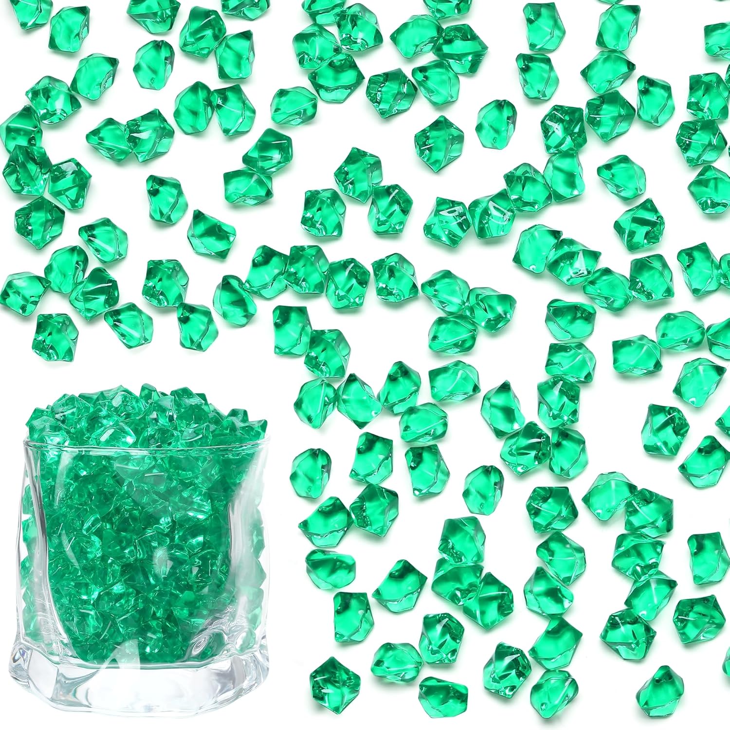 - Important Note:Dark green acrylic ice cubes can be reused for countless parties, weddings, and DIY décor projects. Ideal for decorators, florists, and event planners looking for durable decorative gems. Please note: these acrylic diamonds are for decorative use only—not intended for cooling drinks or edible use