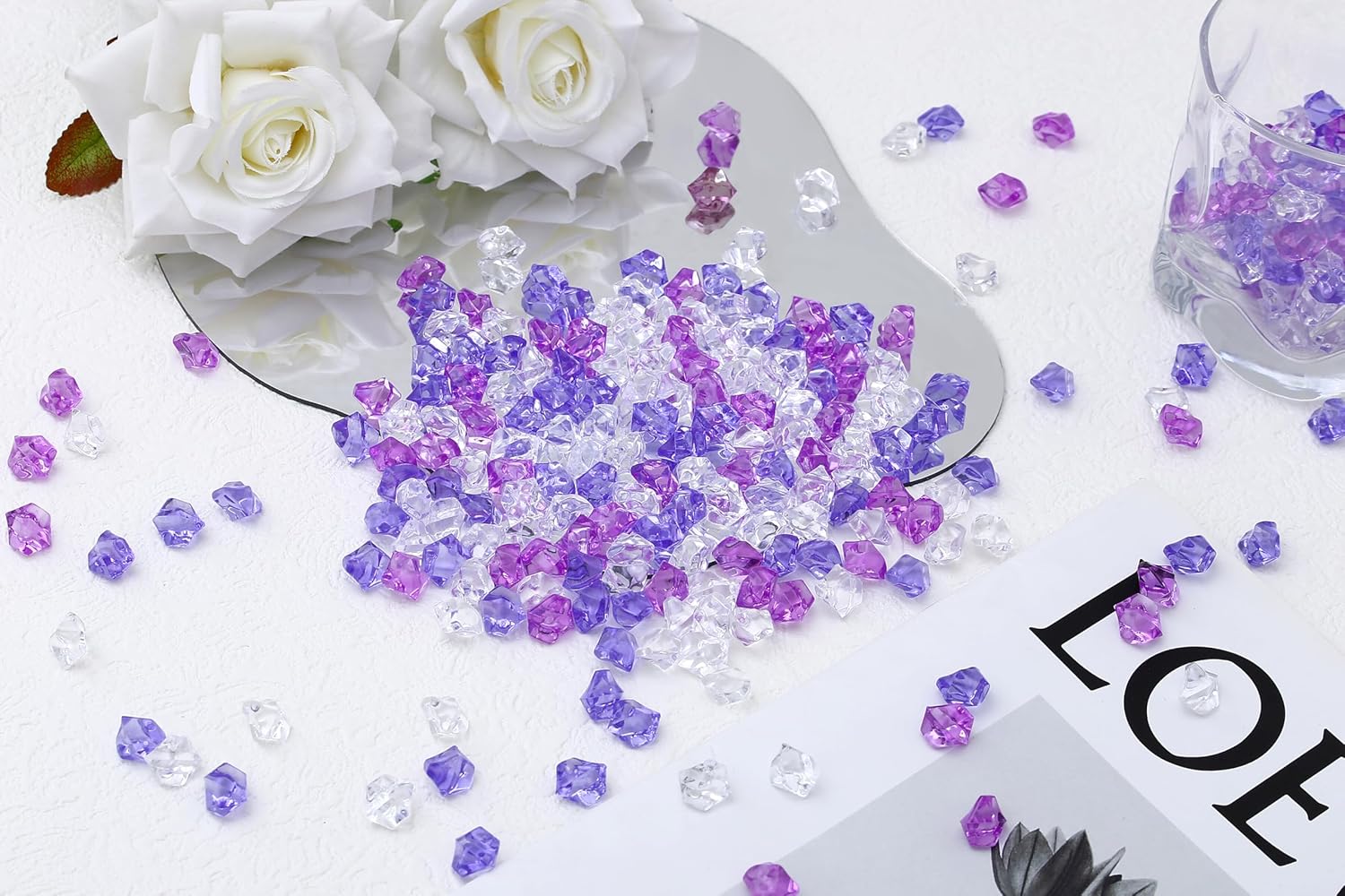 - Versatile Party & Event Décor – These purple acrylic gems sparkle beautifully under lights, great for weddings, bridal showers, Valentine’s Day, graduation celebrations, Christmas table décor, or birthday parties, making every occasion more vibrant, romantic, and stylish