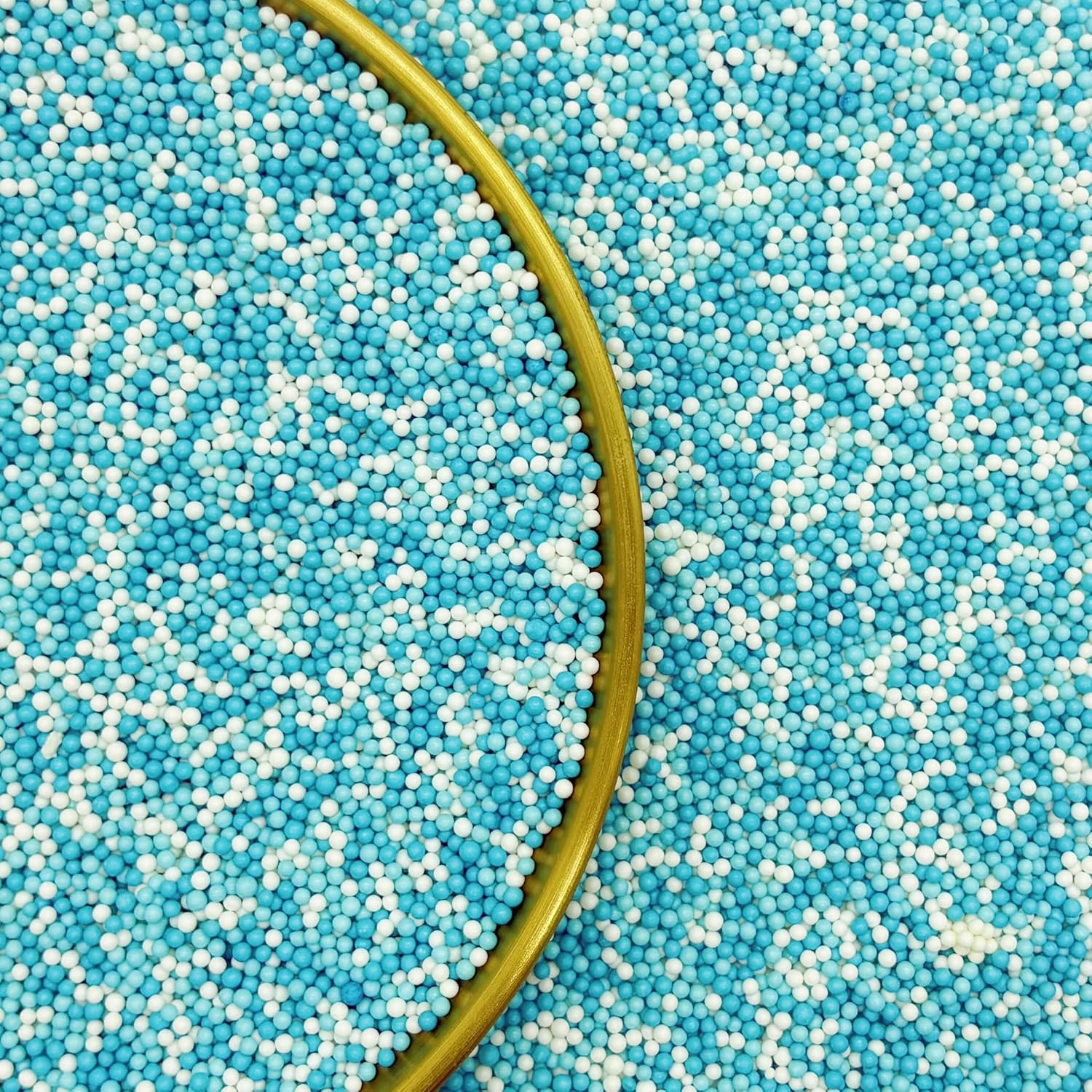 Edible Blue Series & White Sprinkles Candy 2mm Mini Pearls Cake Decorations Cupcake Toppers Cookie Decorating Perfect for Wedding Party Valentine Halloween Christmas Supplies 3OZ