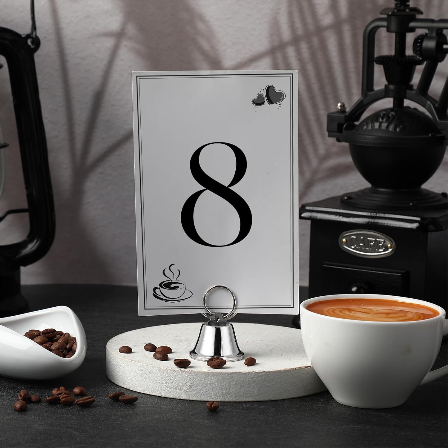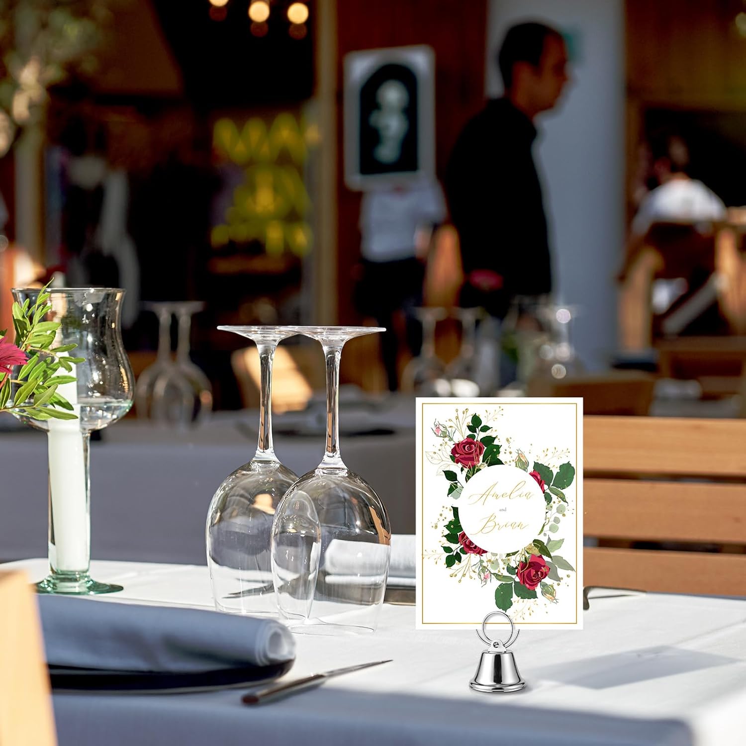 - Suitable Size: Our table number holders are carefully crafted with a size of 1.97 x 1.38 inch/ 5 x 3.5 cm, which will not take up too much desktop space. At the same time, the wedding bells are eye-catching in size, elegant in design, and has a decorative effect, it can be placed with various decorations