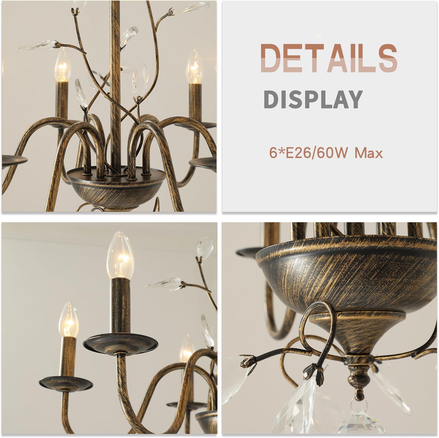 Farmhouse Crystal Chandelier,26 Inch Modern Flower Branch Oil-Rubbed Bronze Rustic Vintage Hanging Pendant Ceiling Light Fixture for Living Room Dining Room Bedroom Foyer Entryway