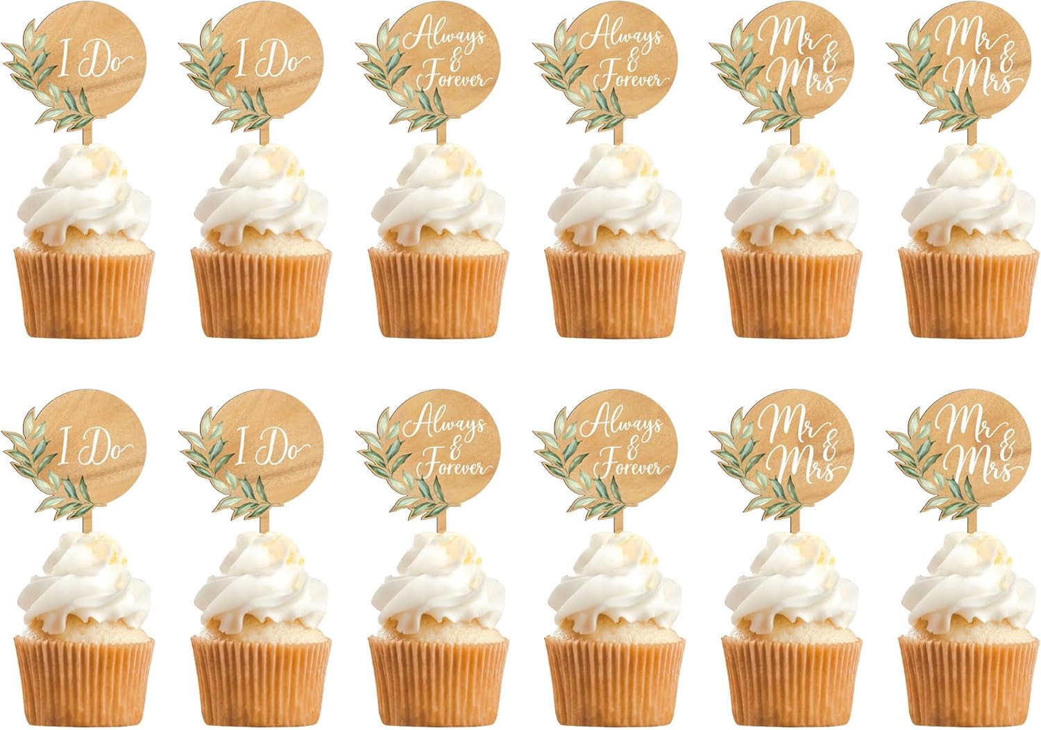 Mr & Mrs Cake Topper & 12 PCS Wedding Cupcake Toppers Green Wedding Decorations in Wood