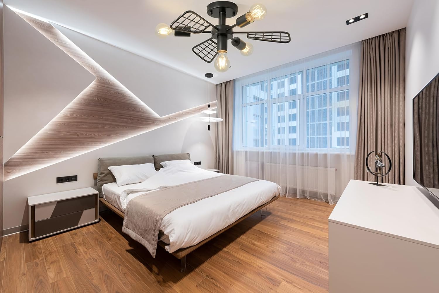 - đWhy choose us?ăMODERN DESIGNă: Unique geometry design ceiling light fixture featuring Fan-shaped veneer in matte black finish for contemporary farmhouse style