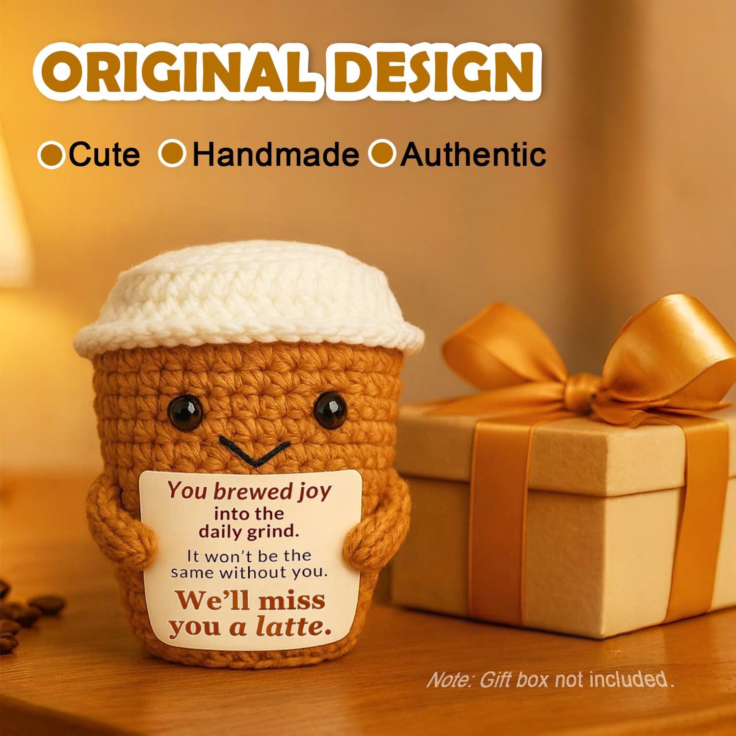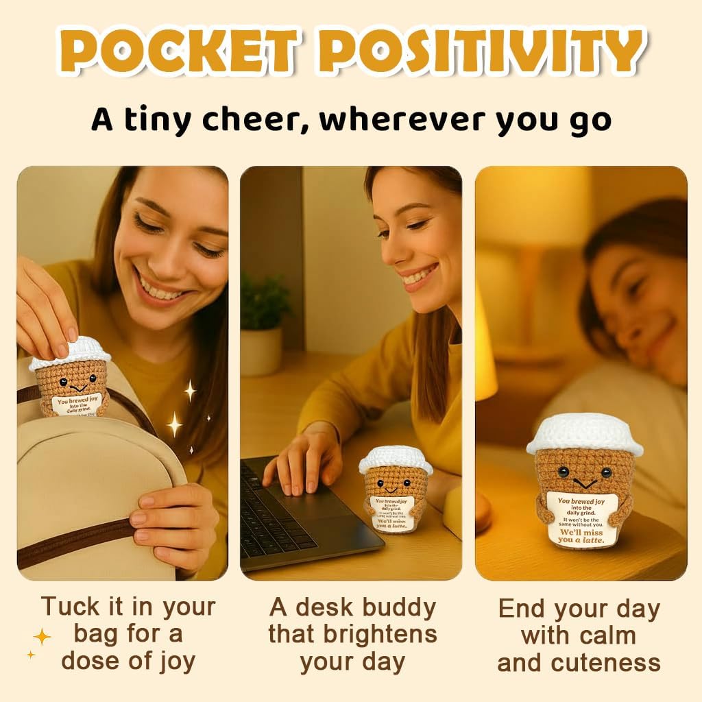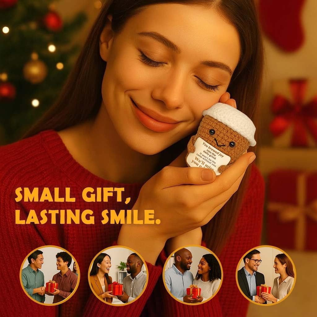 - Coworker Leaving Gift – With the playful message “We’ll miss you a latte,” this crochet coffee cup plush makes a heartfelt coworker leaving gift and a funny way to say goodbye.