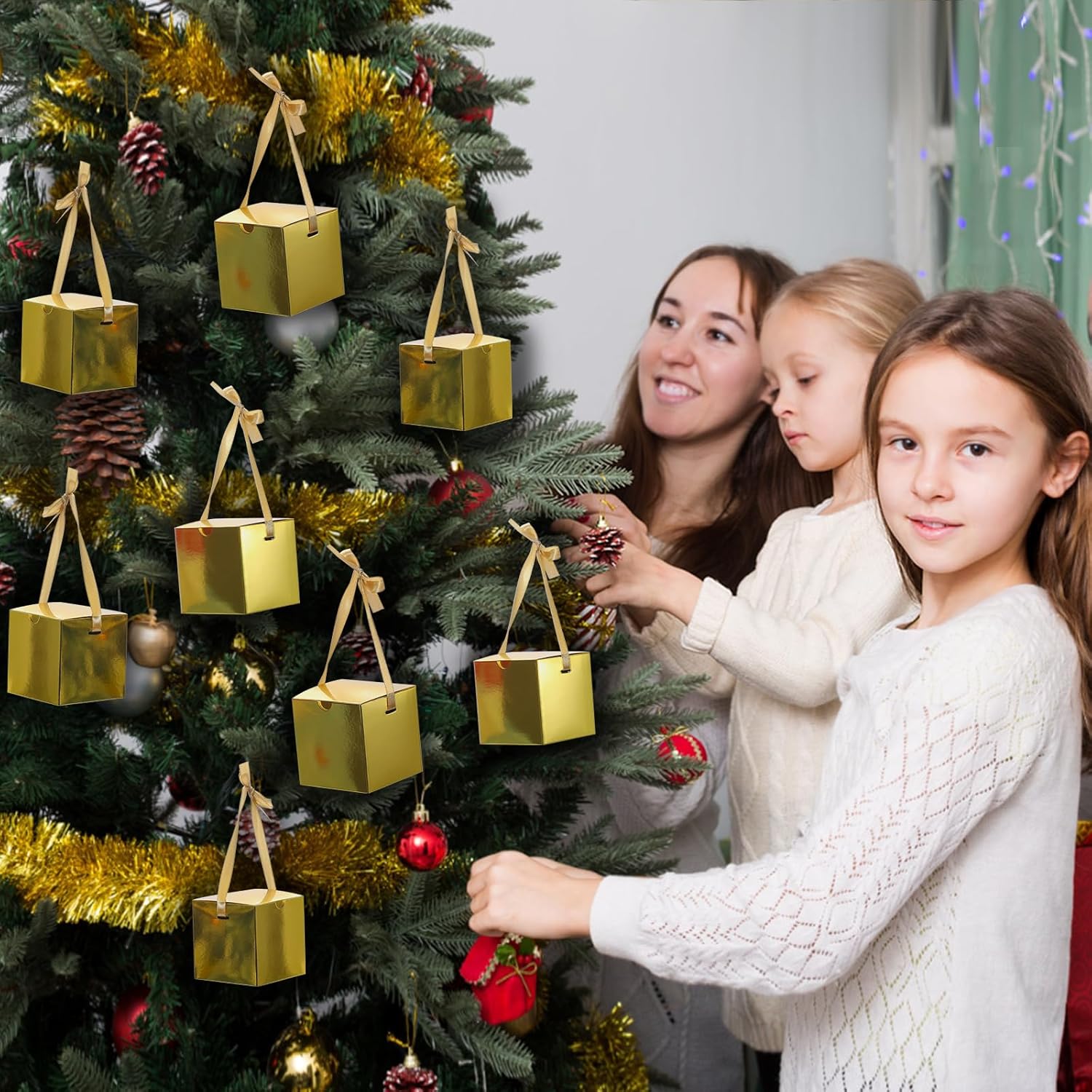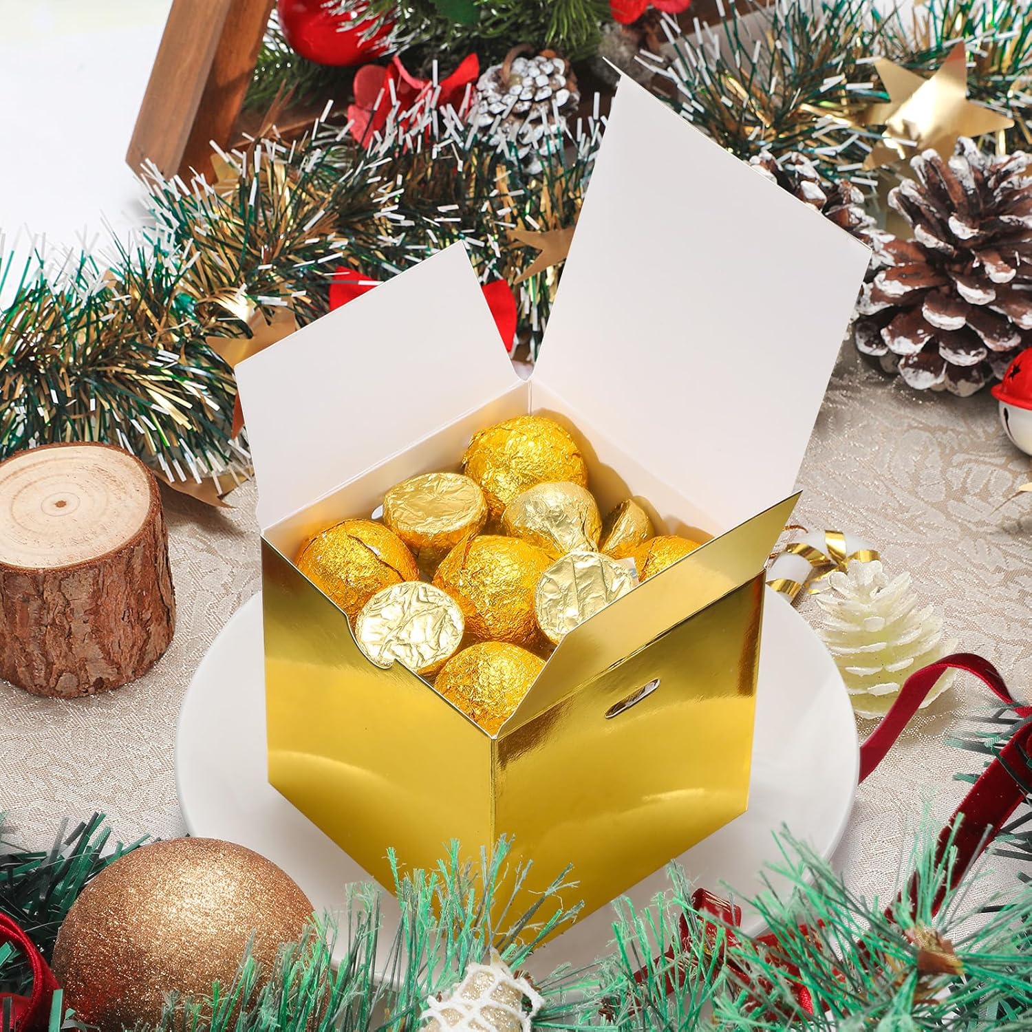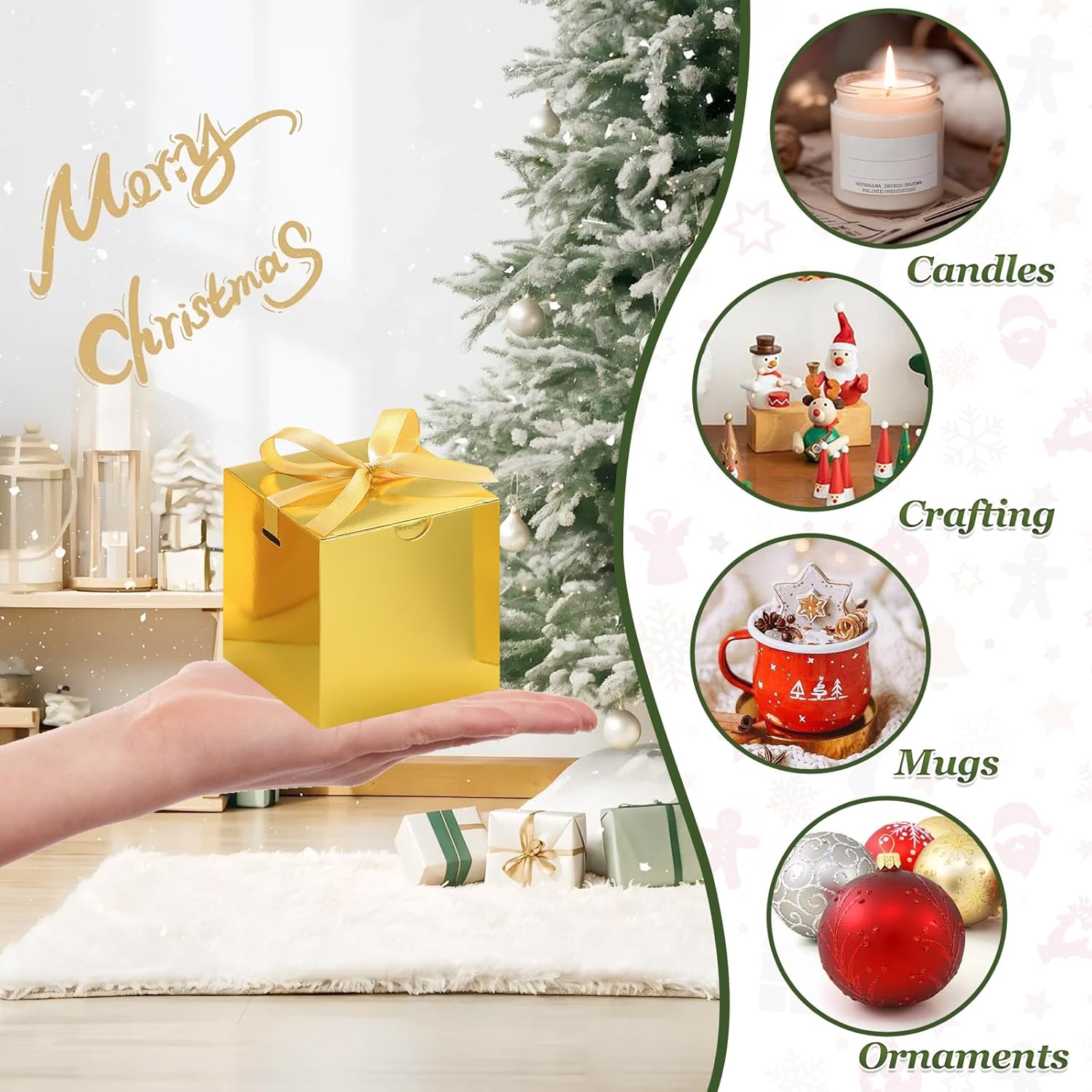 DOYIDE Small Gift Boxes, 60 Pcs 4x4x4 Inch Gold Elegant Paper Box with Ribbons, Party Favor Boxes for Candy Cupcake Christmas Wedding Baby Shower Bridesmaids Birthday