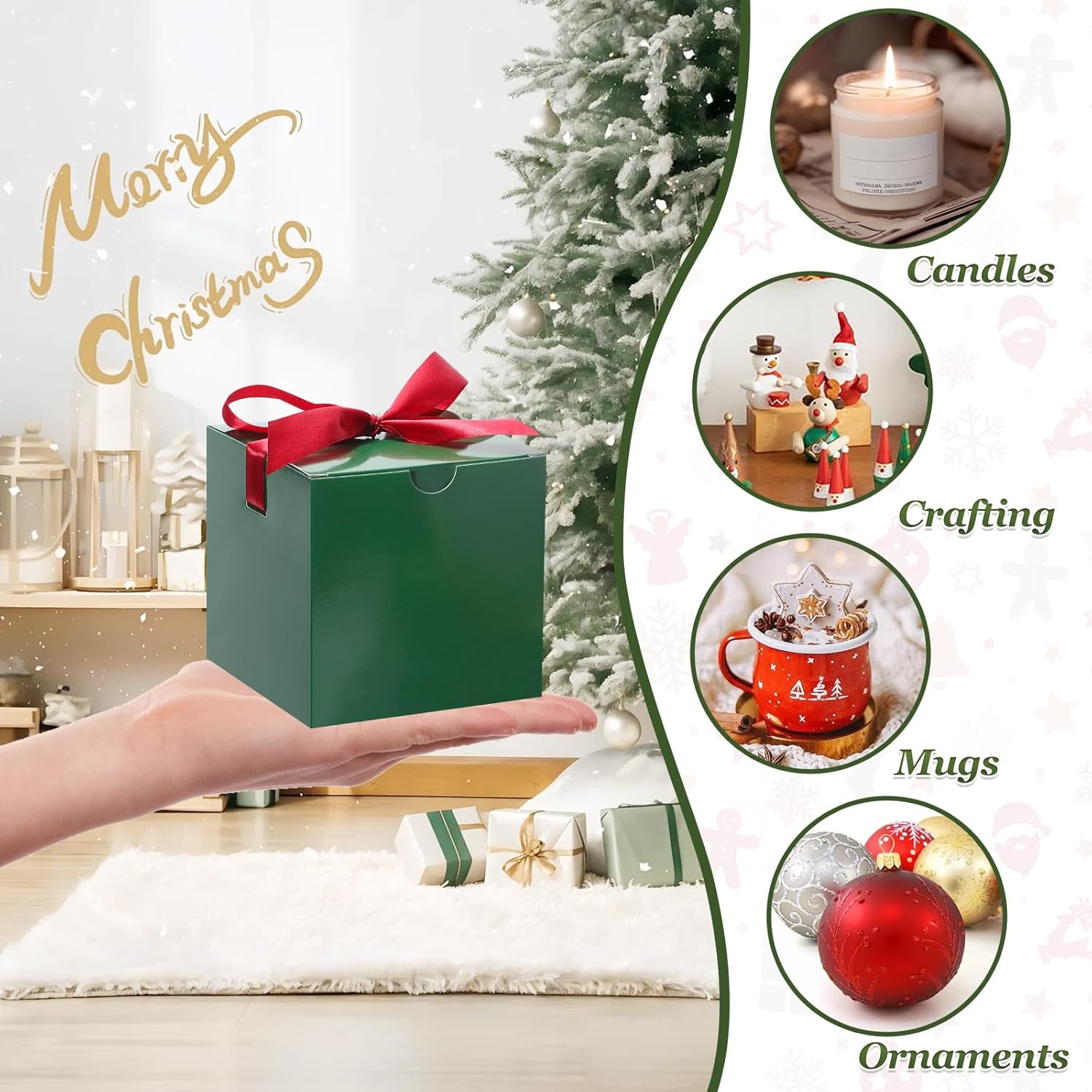DOYIDE Small Gift Boxes, 20 Pack 5x5x5 Inch Green Elegant Paper Boxes with Ribbons, Crafting, Christmas Gift Box Wedding Party Favor, Cupcake, Candy, Bridesmaids Proposal Box