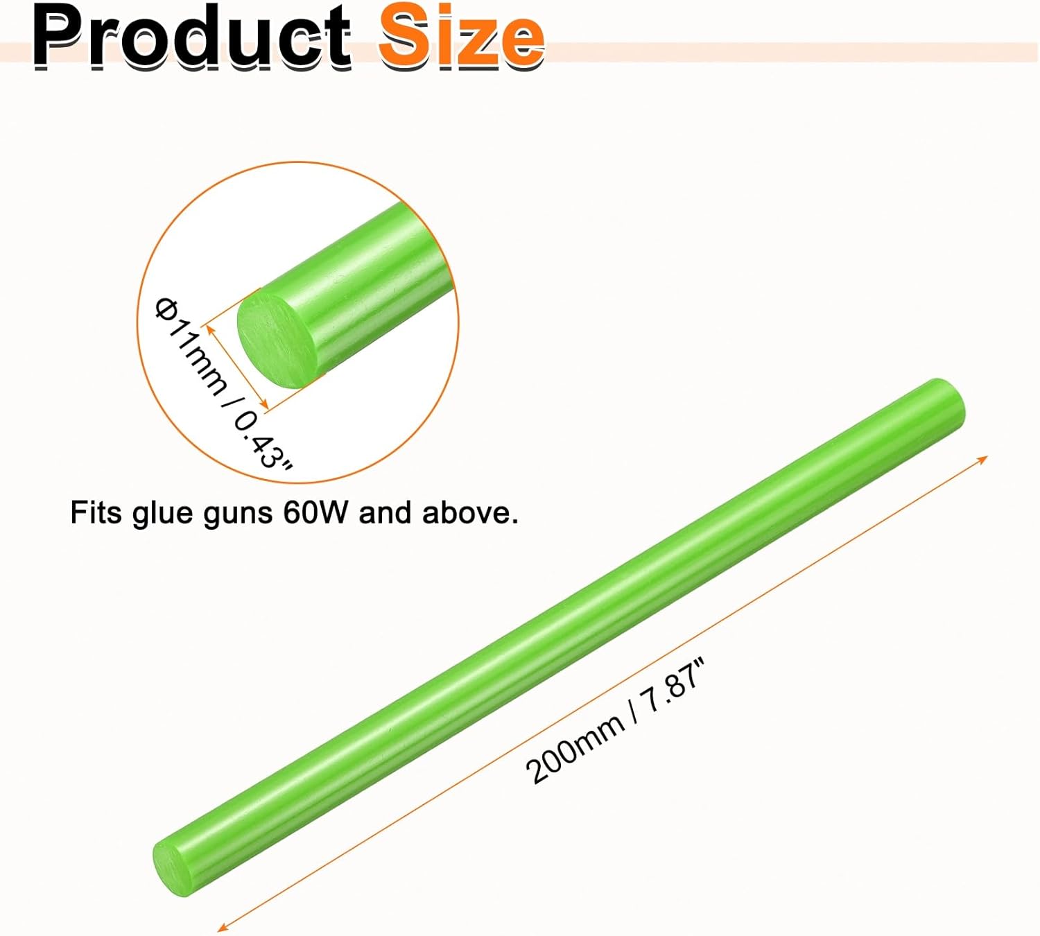 - Size - Hot glue sticks size: 11 x 200mm / 0.43 x 7.87 inch (D*L); Curing time: 10–15 seconds; Working temperature: 150°C (302°F); Softening point: 75°C (167°F).