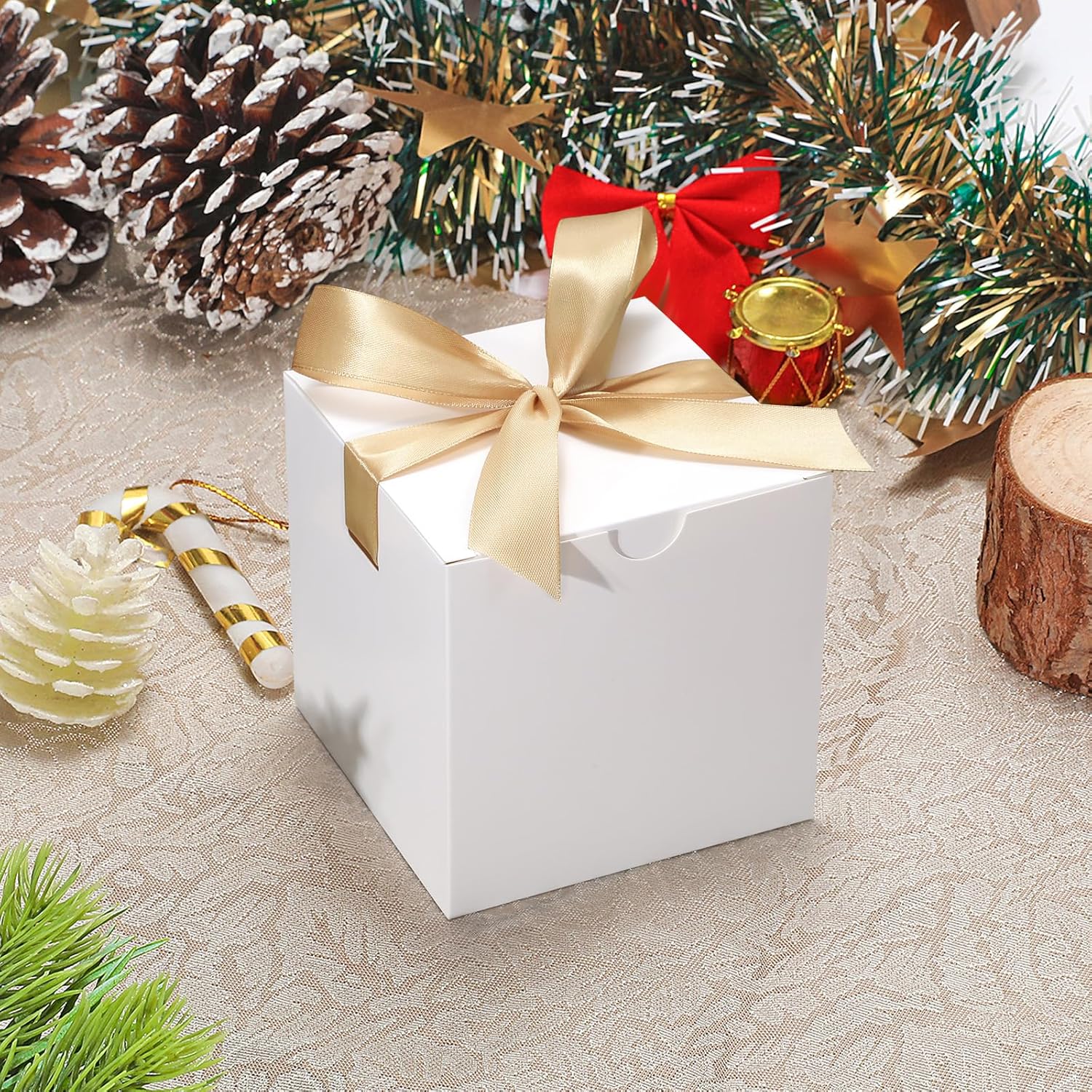 DOYIDE Small Gift Boxes, 20 Pack 5x5x5 Inch White Elegant Paper Boxes with Ribbons, Crafting, Christmas Gift Box Wedding Party Favor, Cupcake, Candy, Bridesmaids Proposal Box