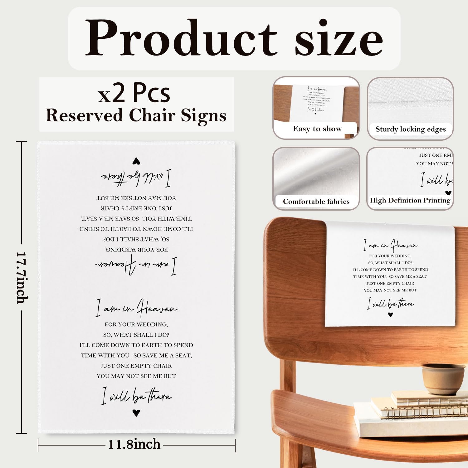 - Assorted Themes Available: Each cloth in the set features different printed messages or designs tailored for various occasions. From weddings and memorial services to church events and celebrations, these versatile signs help you reserve seats with style and clarity.