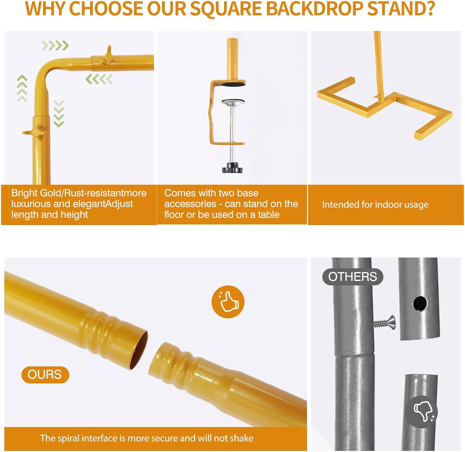 - PREMIUM HEAVY-DUTY METAL TUBING: Features thicker 19mm diameter pipes (vs. 16mm standard) with 0.6mm wall thickness (vs. 0.4mm) and 120g+ weight per pipes(vs. 90g). This heavy duty adjustable square stand with clamps offers superior stability and durability for long-lasting use.