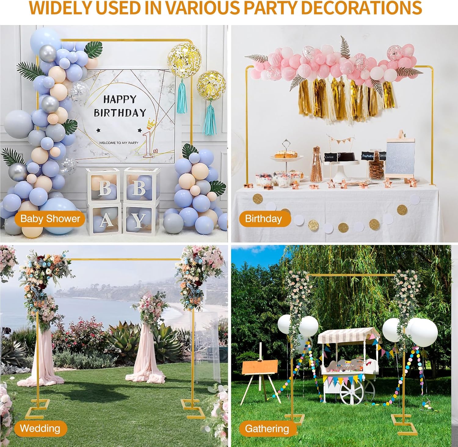 - GARDEN ARCH TRELLIS: In addition to party decorations, this backdrop stand heavy duty can also be used as a plant climbing arch in your garden. Transform your garden into a charming space with this adaptable arch stand.