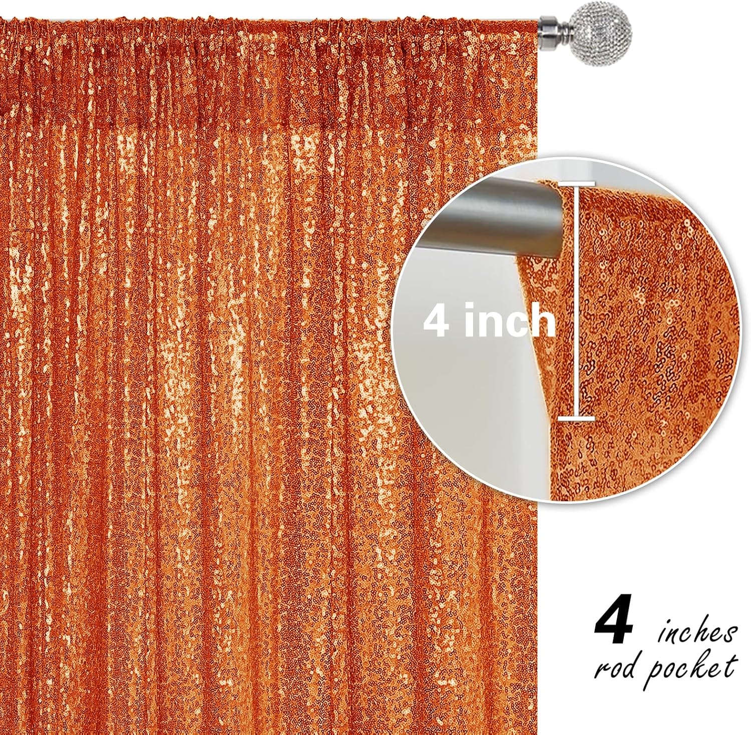Orange Sequin Backdrop Curtain 2 Pieces 2FTx8FT Glitter Photography Backdrop for Party Wedding Birthday Christmas Decorations