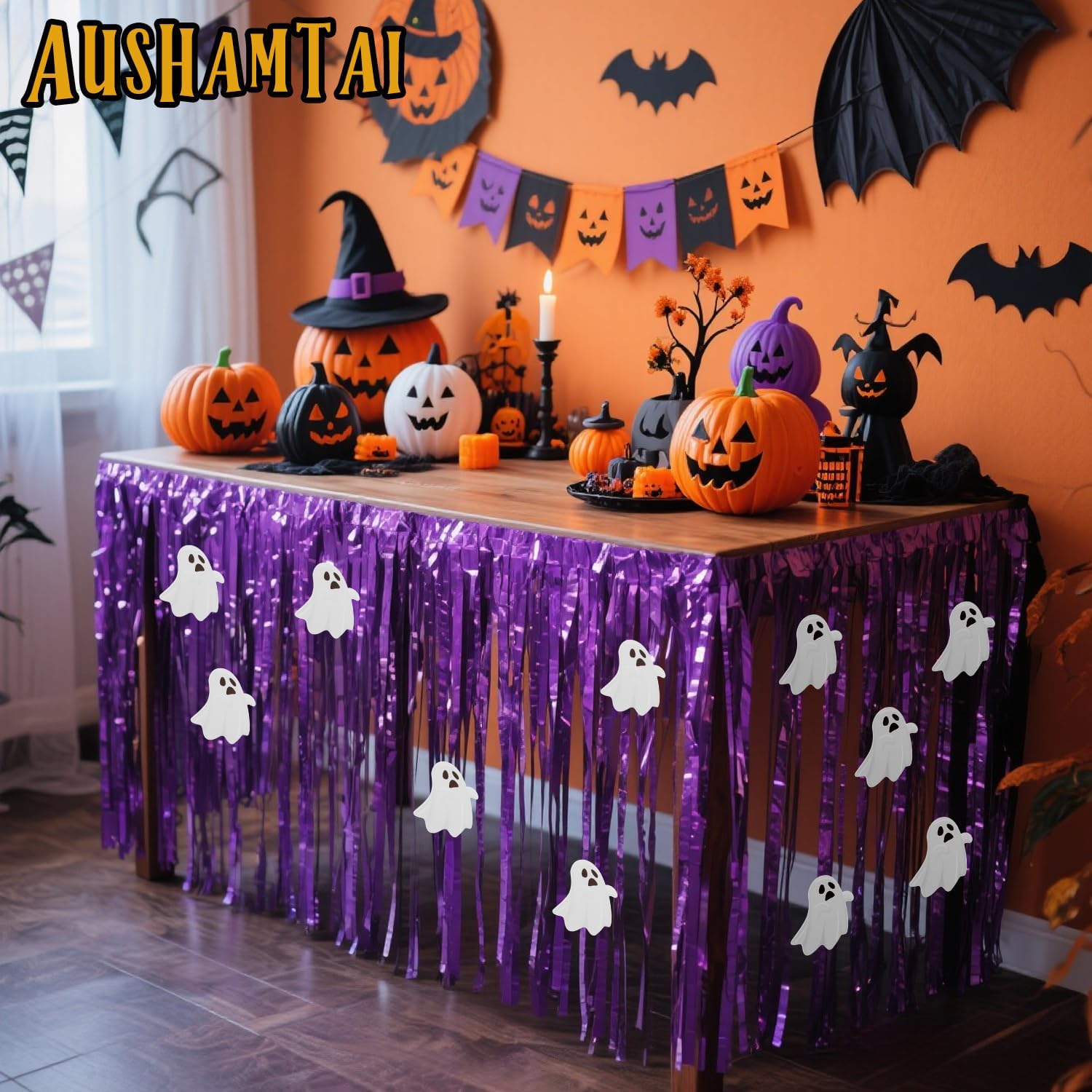 - Halloween table decorations: the purple tablecloth is a necessary complement for halloween themed party. These halloween table skirting with ghost decorations will enhance the festive atmosphere, with large quantity and quality material, you deserve them.