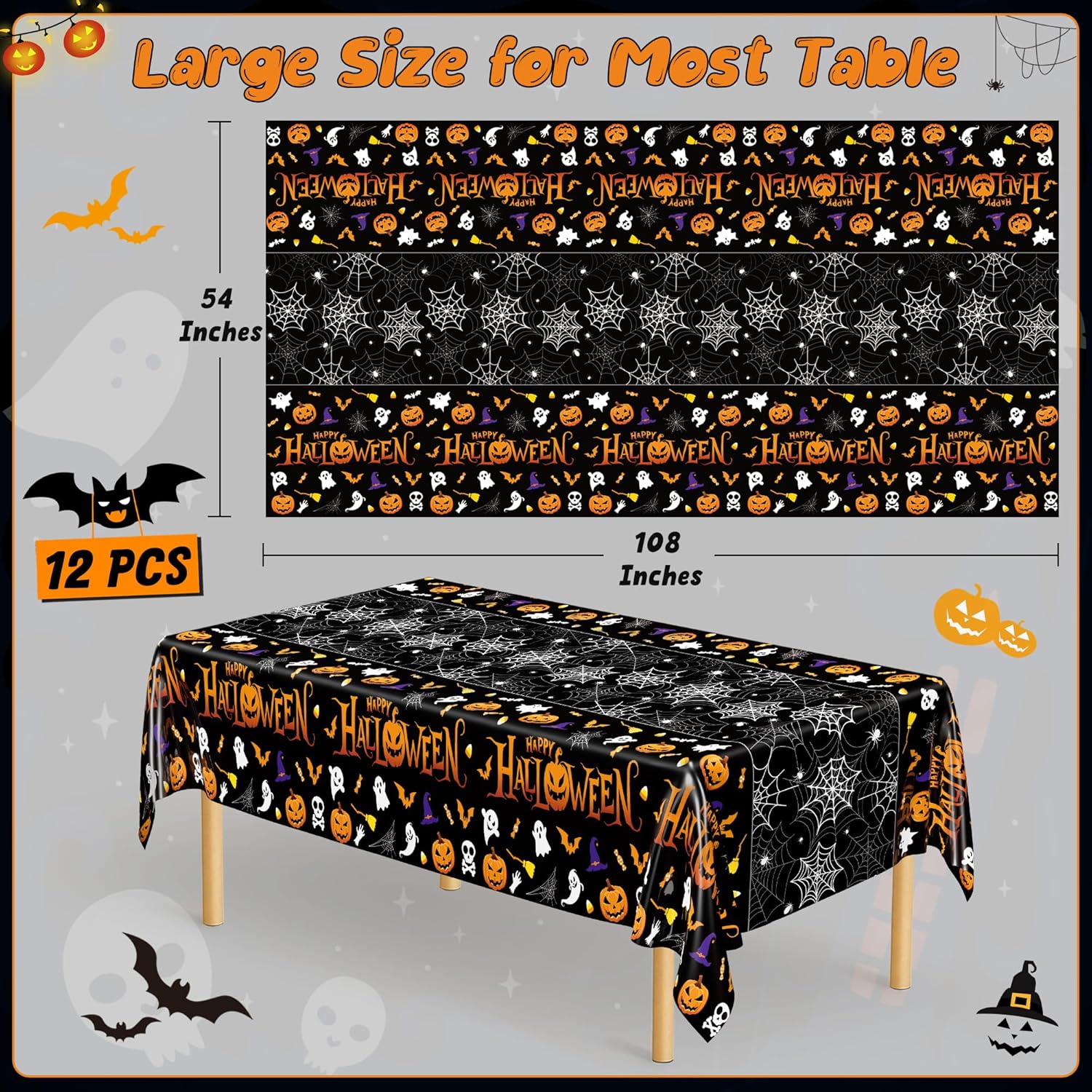 - Package Includes: You will receive 12 PCS Halloween disposable tablecloths, each tablecloth measures 54" x 108", extra large size and enough quantity for your Halloween indoor decorations.