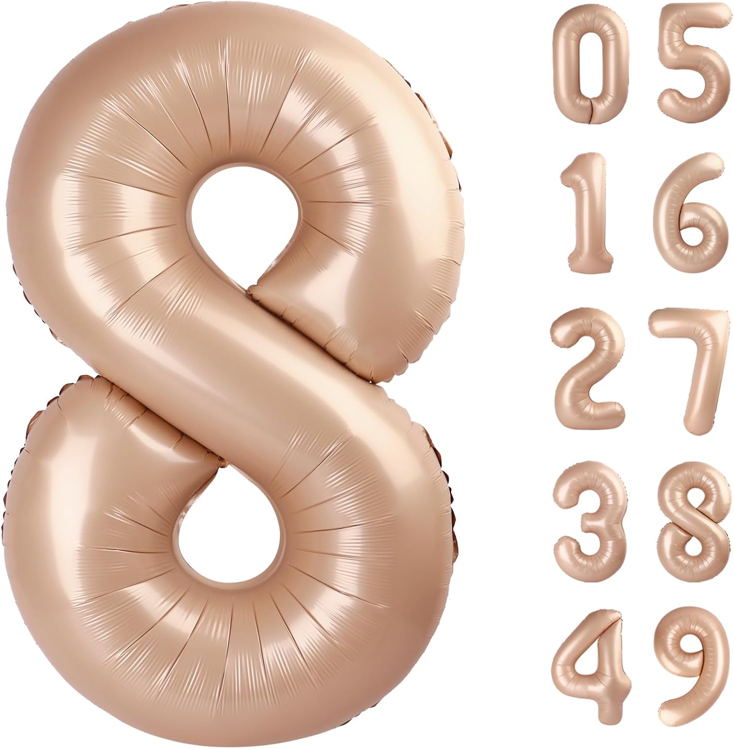 - 1.Make Party Charming with Light Brown Number Balloon: You will receive an uninflated 40 inch number 8 balloon. Big number balloons are always the best statement of romance and surprise. Light Brown balloons symbolize vitality exoticism, adding glamour to birthday parties.Bright metallic light brown and huge size make balloons a highlight of special parties.Choose one or more numbers from 0-9 birthday numbers,and use 8 18 28 38 48 58 68 78 80 98 balloon numbers to create a charming party!