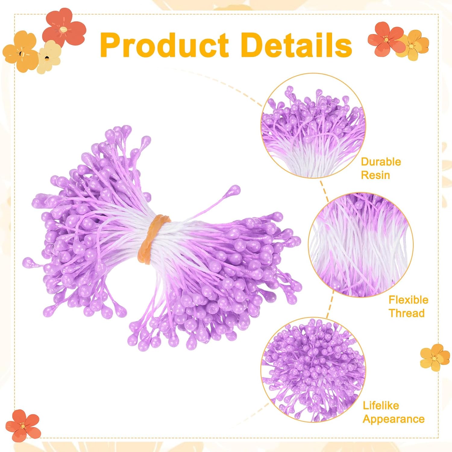 - [Durable Artificial Flower Stamen] - The pistilos flores artificial are handcrafted from flexible cotton thread and resin. They are soft, durable, not prone to breakage or deformation, reusable, and have a long-lasting color that does not fade. They can easily create a lifelike effect just like a real flower