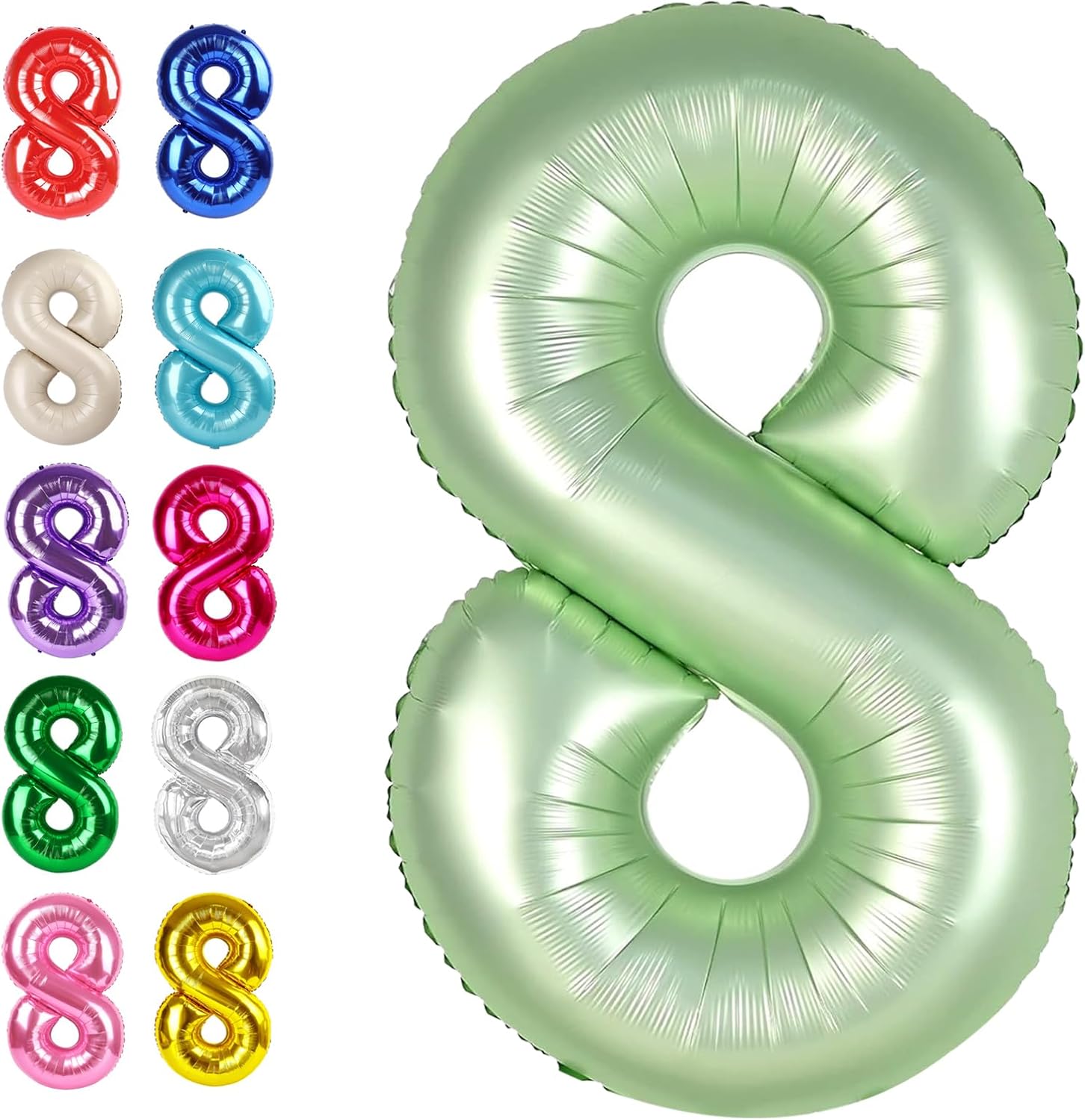 - 1.Noble Romantic Sage Green Number Balloons: You will receive an uninflated 40 inch green number 8 balloon. Balloons are always the best statement of romance surprise.Sage green foil number balloon set symbolize eternal magical, adding glamour to birthday parties. Elegant oliver green and huge size make 8 balloons for birthday girl a highlight of parties. Choose one or more numbers from 0-9 number balloon, and use 8 18 28 38 48 58 68 78 80 98 balloon numbers to create a lively charming party!