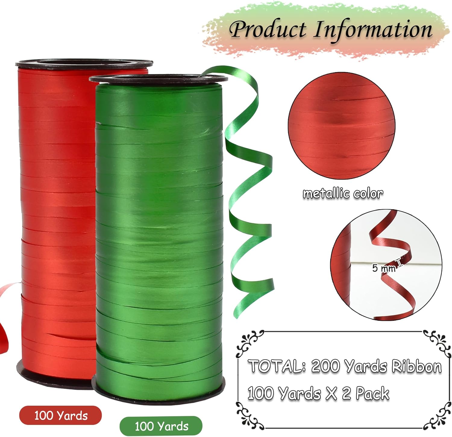 BEISHIDA Red and Green Christams Curling Ribbons Balloon String Ribbons - 2 Pack 100 Yards for Gift Warppping Birthday Christmas Wedding Party Decorations
