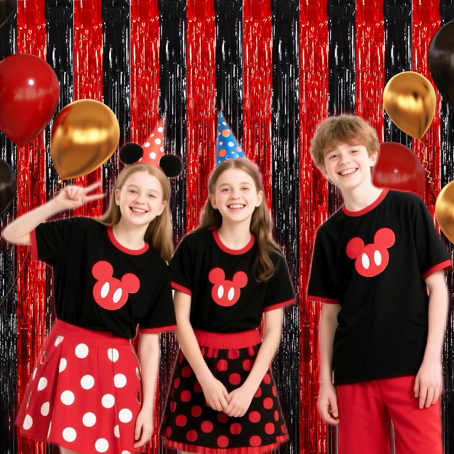 BEISHIDA Red Black Door Streamers Backdrop Foil Fringe Tinsel Party Streamers Curtains Photo Backdrop - 2Pcs for Birthday Graduation Bachelorette Halloween New Year Party Decoations