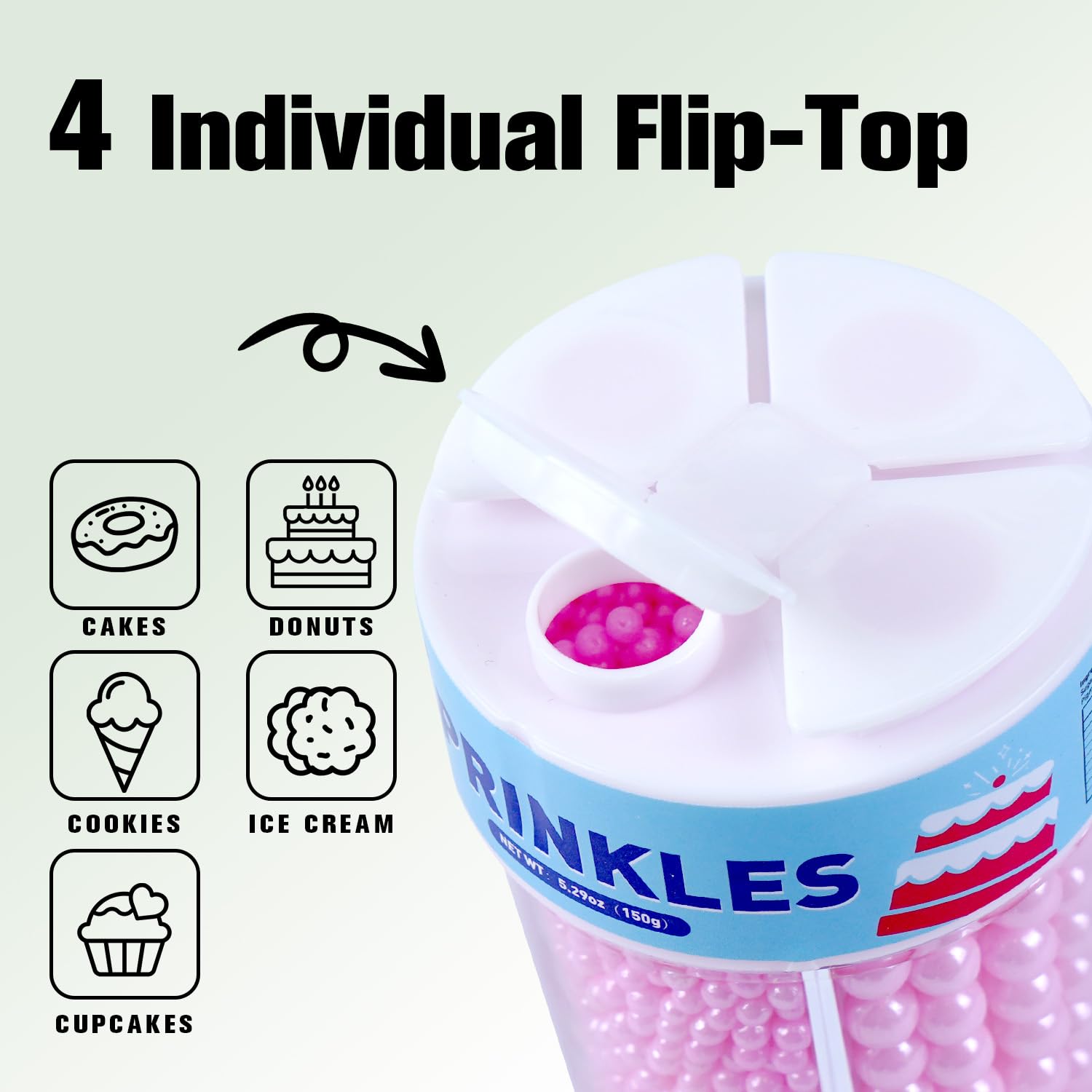 - Mix size Pearl Ball Sprinkles can meet the needs of decorative production of a variety of bakery products, with a high cost-effective. Pearl Sugar Sprinkles suitable for cakes, cookies, Ice cream, Cupcakes other Foods. 1 bottle of sugar sprinkles makes 3-5 cupcakes or one 3-inch diameter cake. After baking, you can place pearl sprinkles on top of the cake as decoration.
