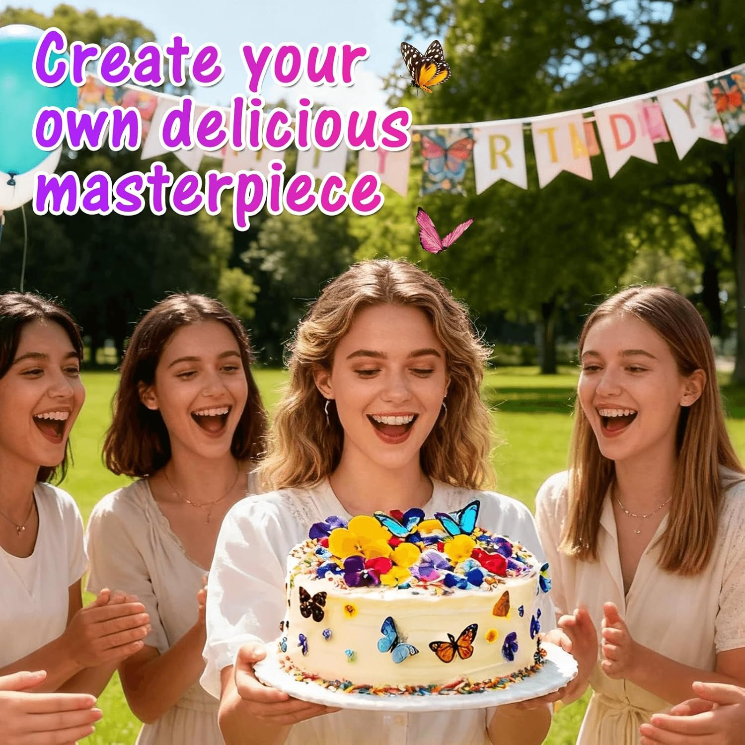 - Floral Butterfly Set : Includes 40 pressed edible pansy flowers and 40 realistic wafer paper butterflies in assorted styles, sizes, and colors—perfect for cake decorating, cocktails, and DIY crafts.