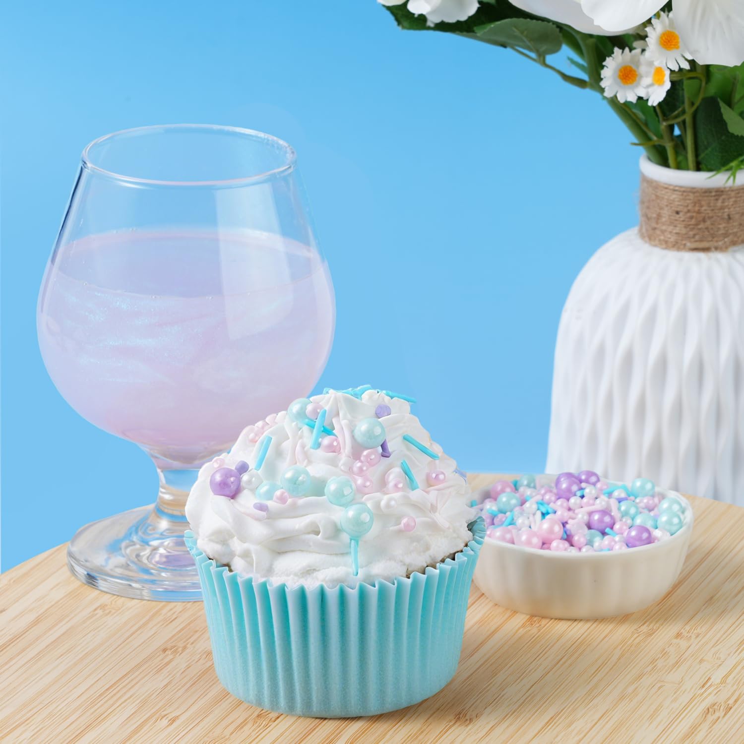 - Pastel sprinkles add a dreamy touch to desserts – These edible glittery sugar pearls feature soft blue, purple, and pink hues, perfect for birthday cakes, cupcakes, cookies, and donuts.