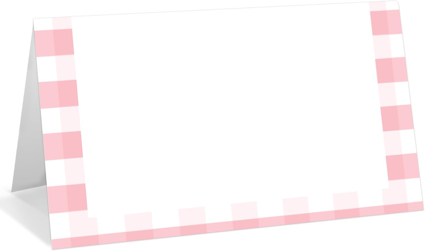 25 Pack Pink Stripes Place Cards, Editable Name Cards for Table Setting, Tent Cards Food Label for Dinner Party, Bridal Shower, Wedding, Baby Shower and Events -T01