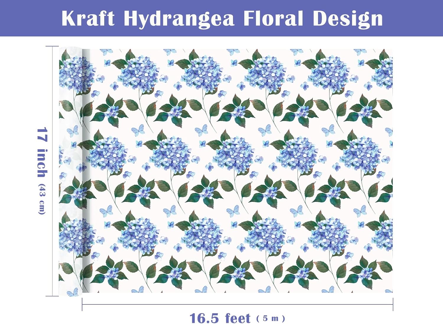 - Kraft Floral Design: Kraft blue and white hydrangea floral wrapping paper design, will make your gift exudes charm and elegance. The flower wrapping paper make it ideal for creating a wonderful gift presentation that leaves a lasting impression.