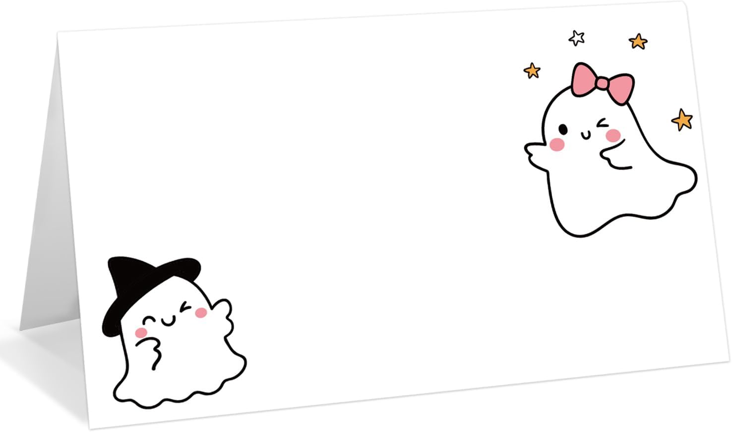 25 Pack Halloween Place Cards, Editable Name Cards for Table Setting, Cute Ghost Tent Cards Food Label for Dinner Party, Bridal Shower, Wedding, Baby Shower and Events -T37