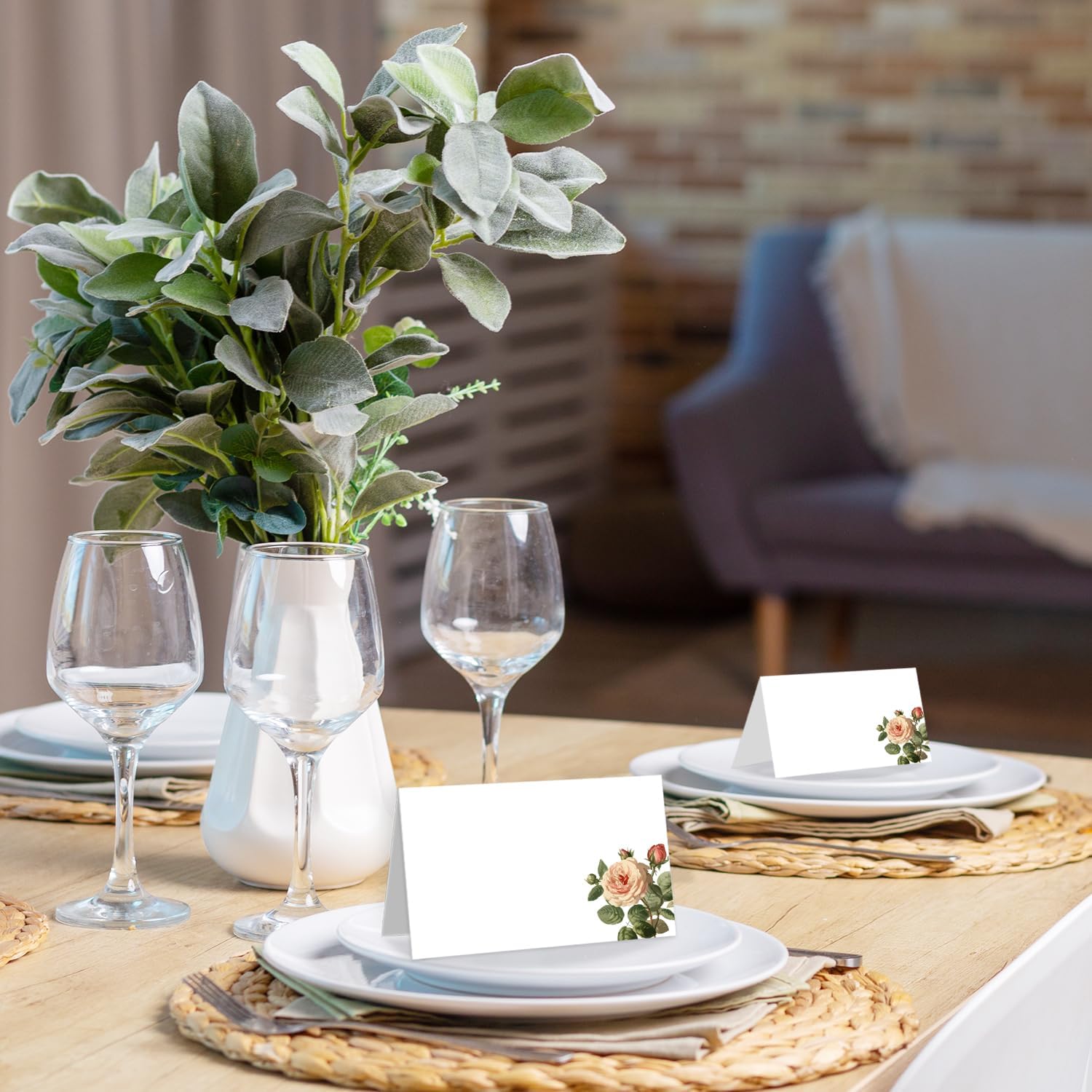25 Pack Floral Place Cards, Editable Name Cards for Table Setting, Tent Cards Food Label for Dinner Party, Bridal Shower, Wedding, Baby Shower and Events -T05