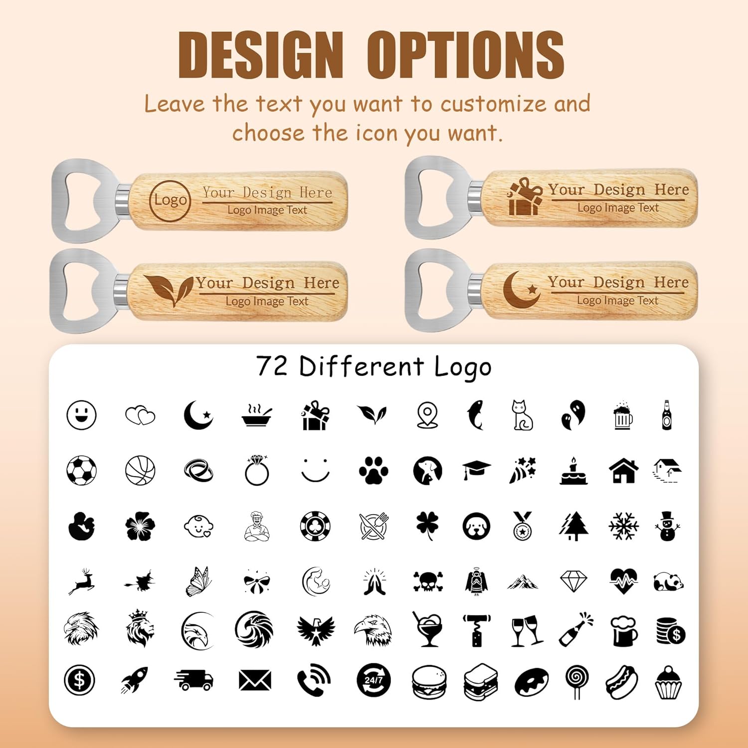15-100 PCS Personalized Bottle Openers with Wooden Handle, Bulk Customized Text/Logo/Photo Beer Bottle Opener, Laser Engraved, Bar Party Favors, Family Reunion Wedding, Birthday