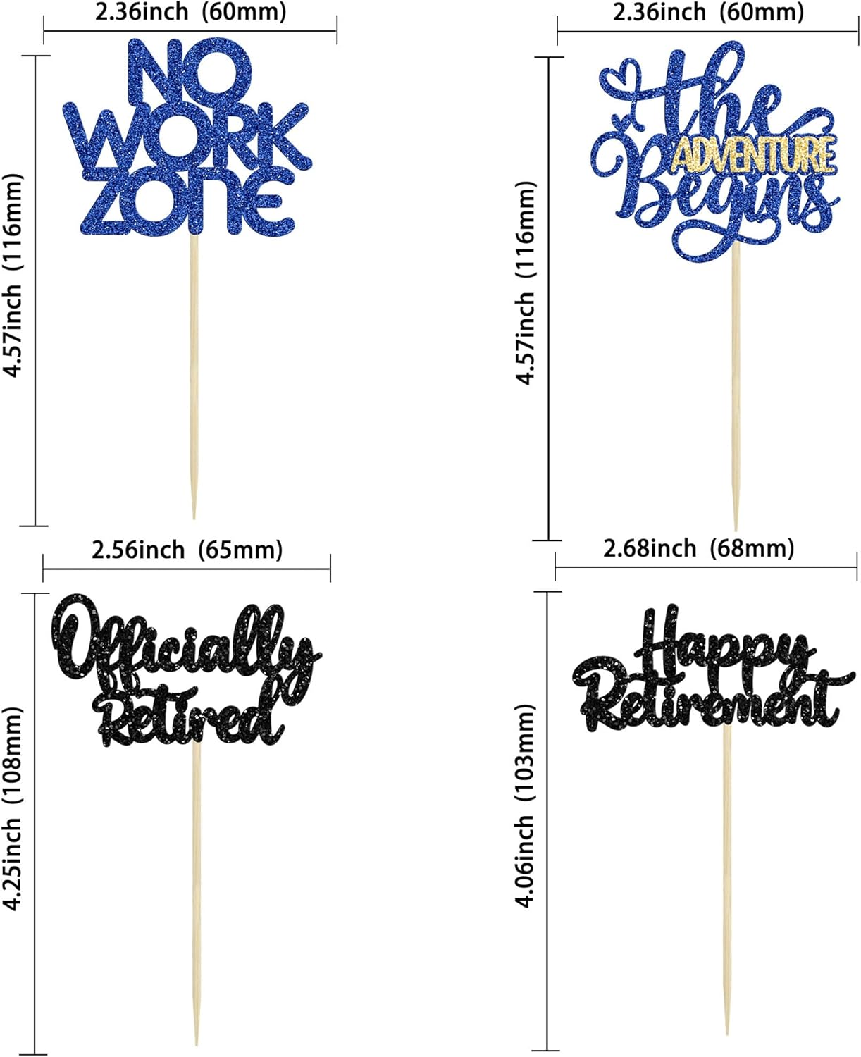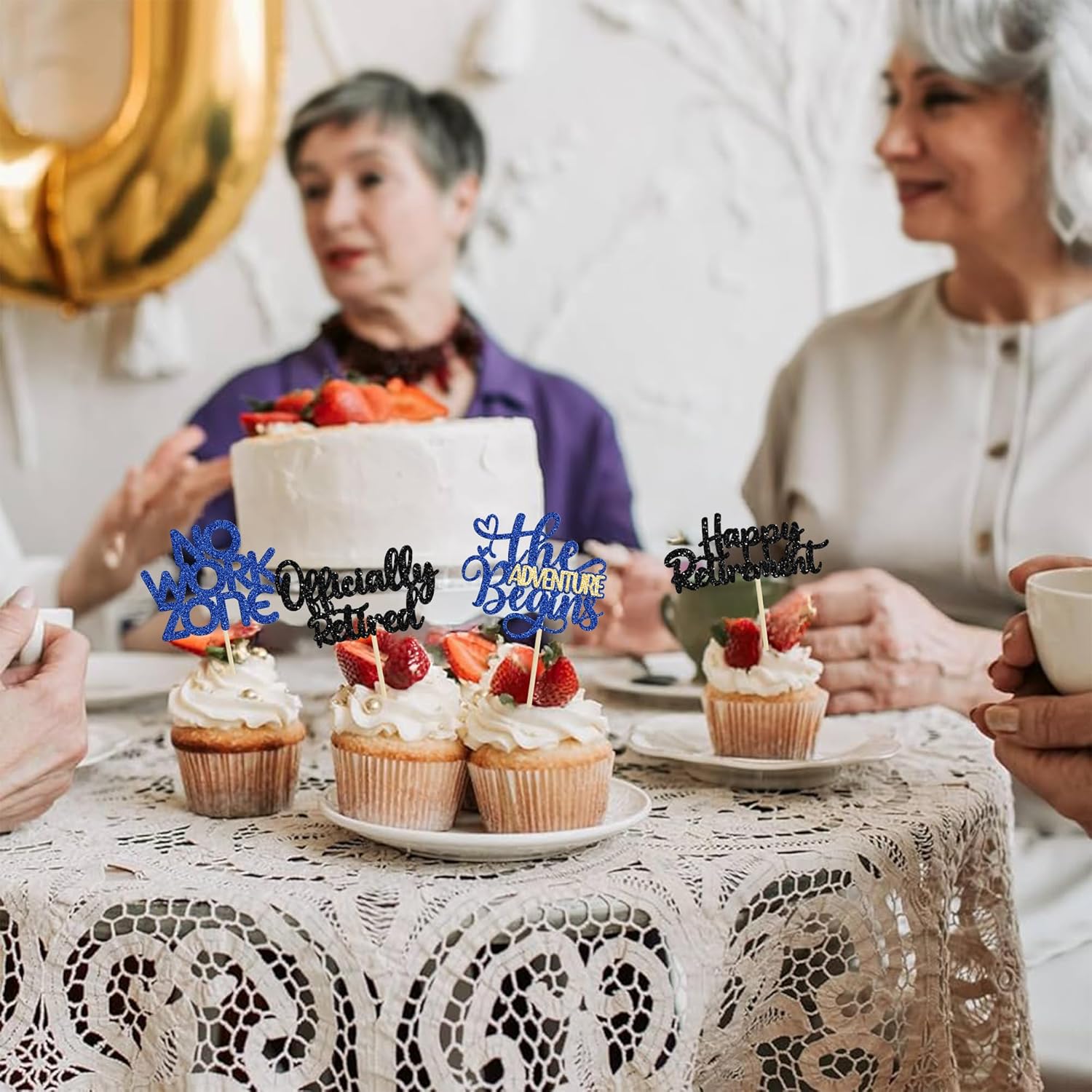 24Pcs Happy Retirement Cupcake Toppers Officially Retired Cake Toppers No Work Zone Adventure Begins Cupcake Picks Retirement Theme Farewell Birthday Party Decorations Supplies Black Blue