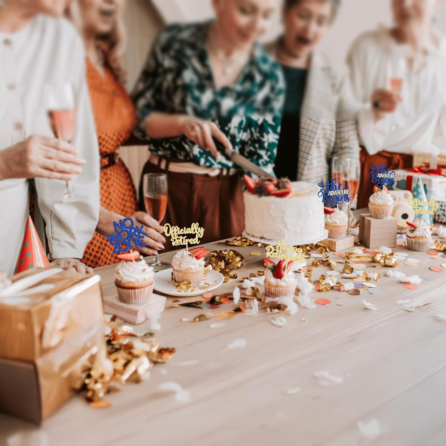 - 【NO Required】: 24Pcs Happy Retirement Cupcake Toppers can put in the cake directly! These Happy Retirement Cupcake Toppers saves your time and super easy to use. You can easily dress up your birthday theme cakes, yes! but don't stop there, put them into desserts, cookies, fruit pieces, appetizers, muffins and so much more!