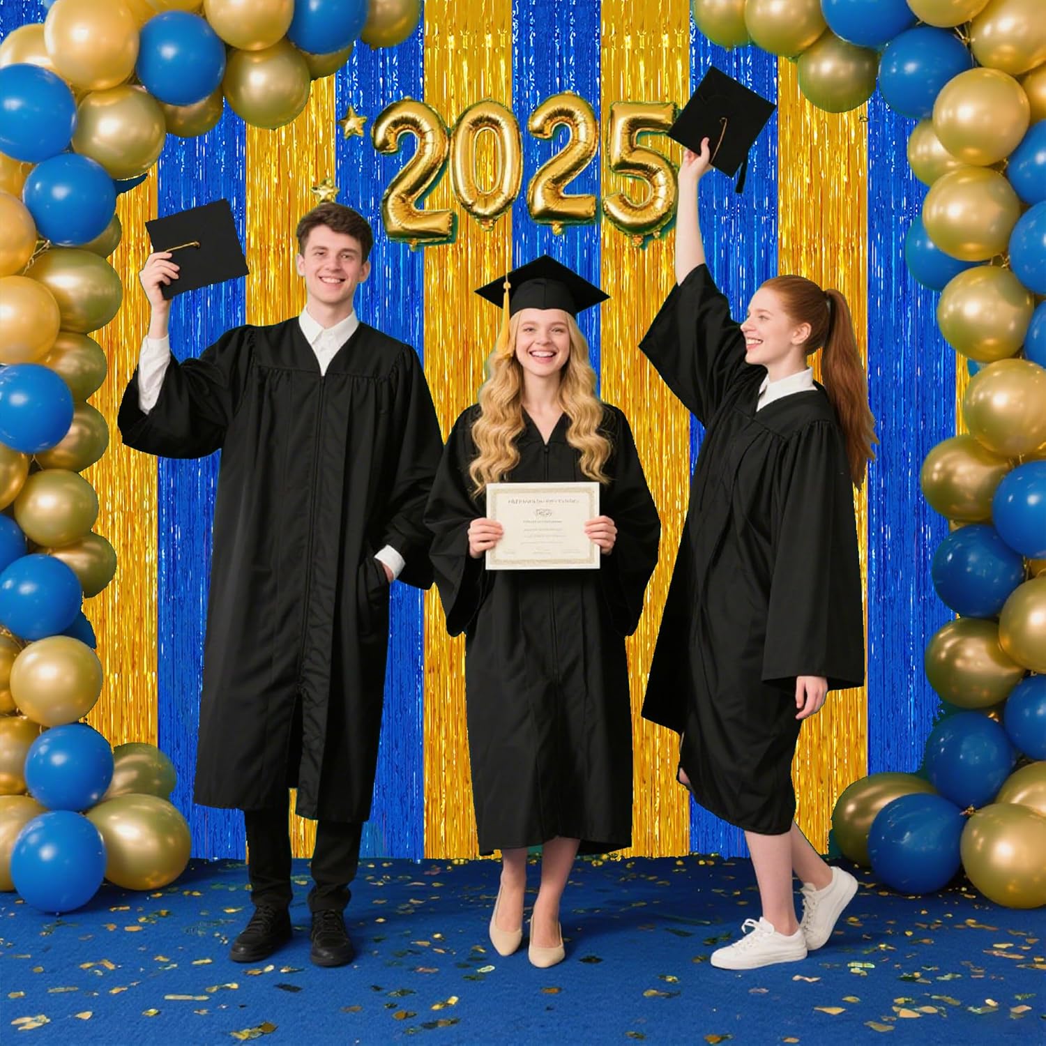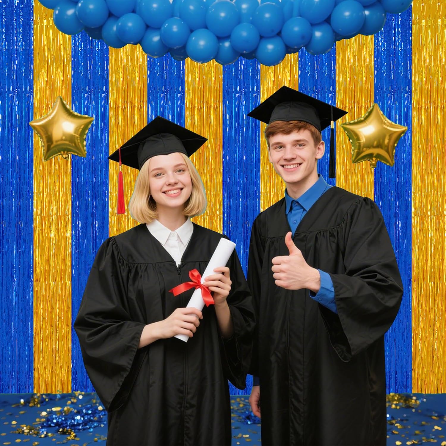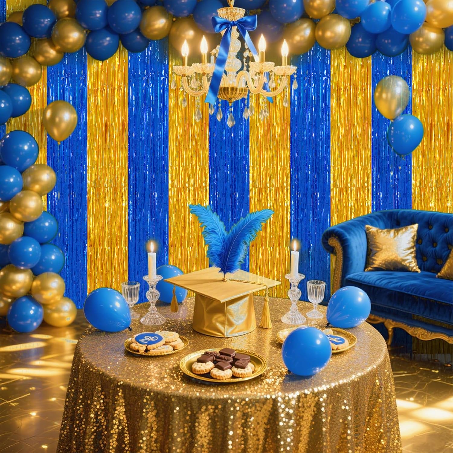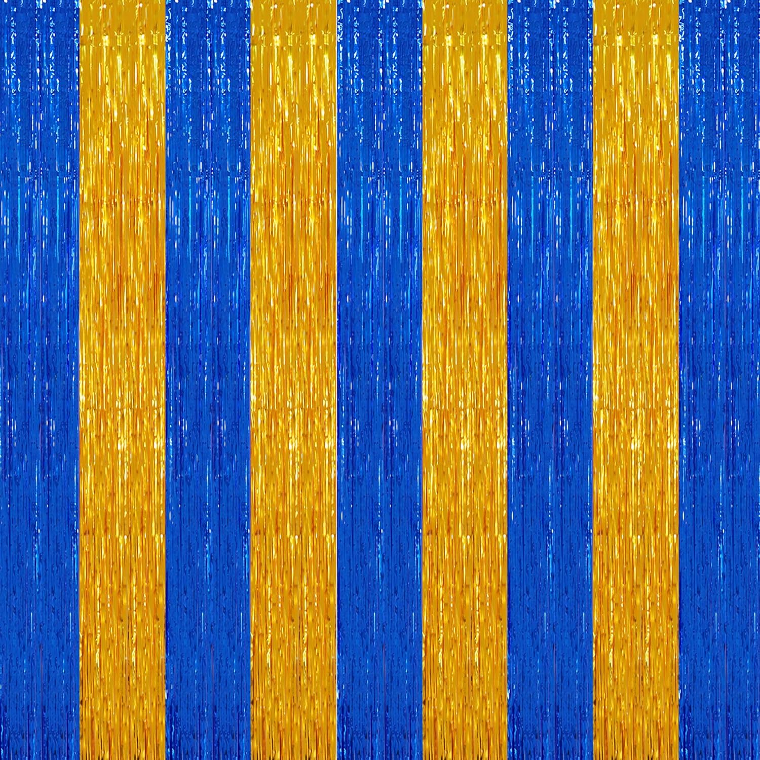 TONIFUL 2Pcs Blue Gold Door Streamers,Green Photo Booth Backdrop,Metallic Streamers Green Foil Fringe Curtains for Birthday,Christmas,New Year,St. Patrick's Day Party Streamers Decor