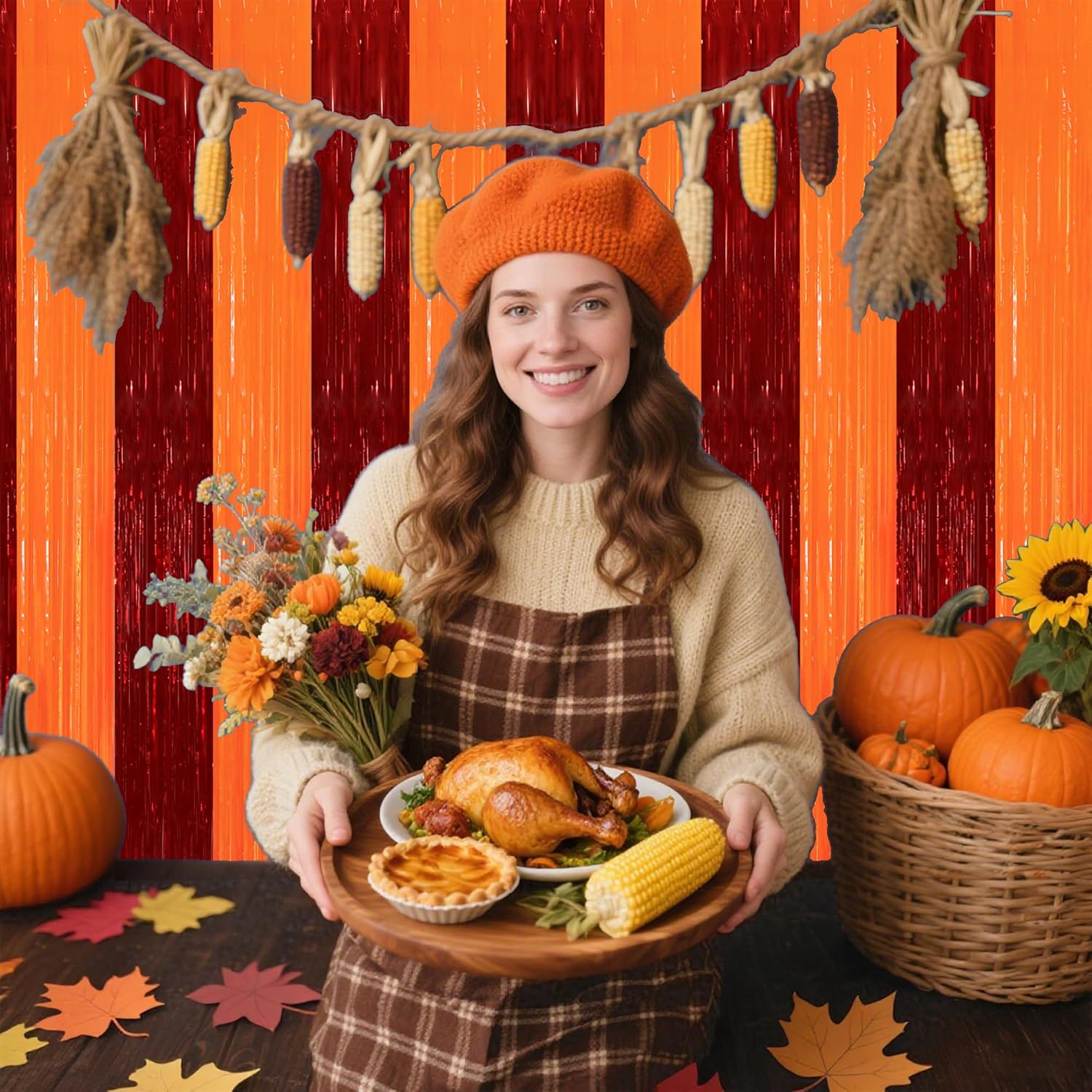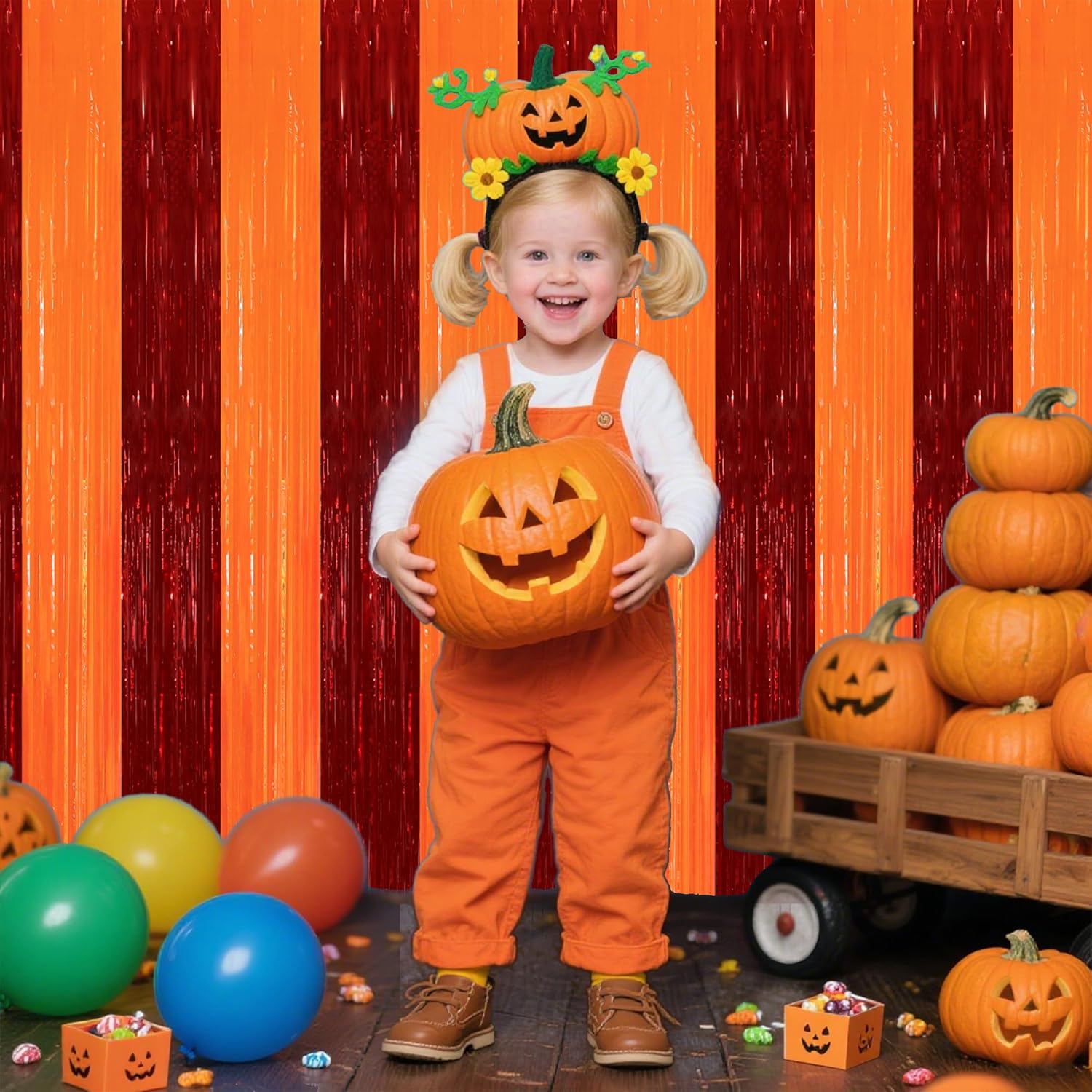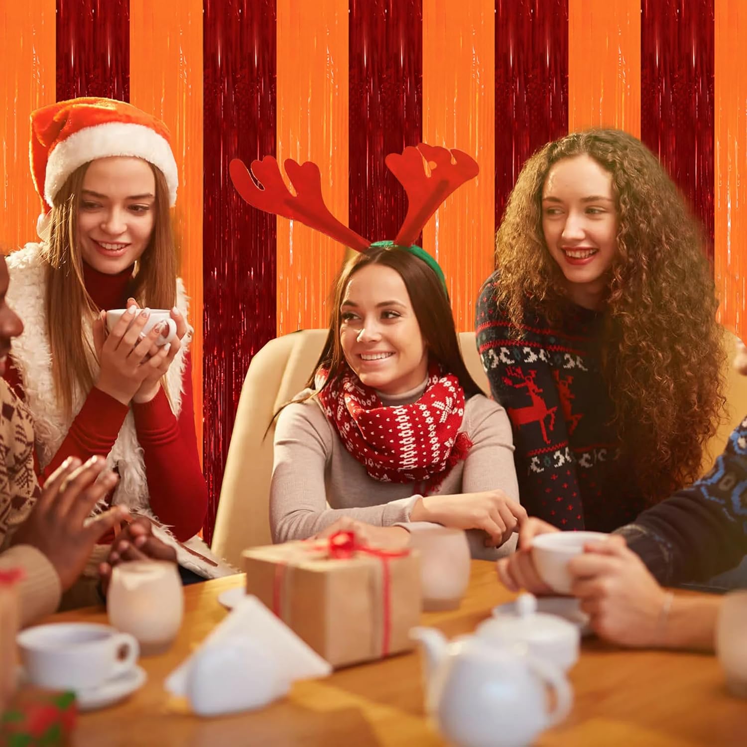 TONIFUL 2Pcs Red Orange Door Streamers,Green Photo Booth Backdrop,Metallic Streamers Green Foil Fringe Curtains for Birthday,Christmas,New Year,Thanksgiving,St. Patrick's Day Party Streamers Decor
