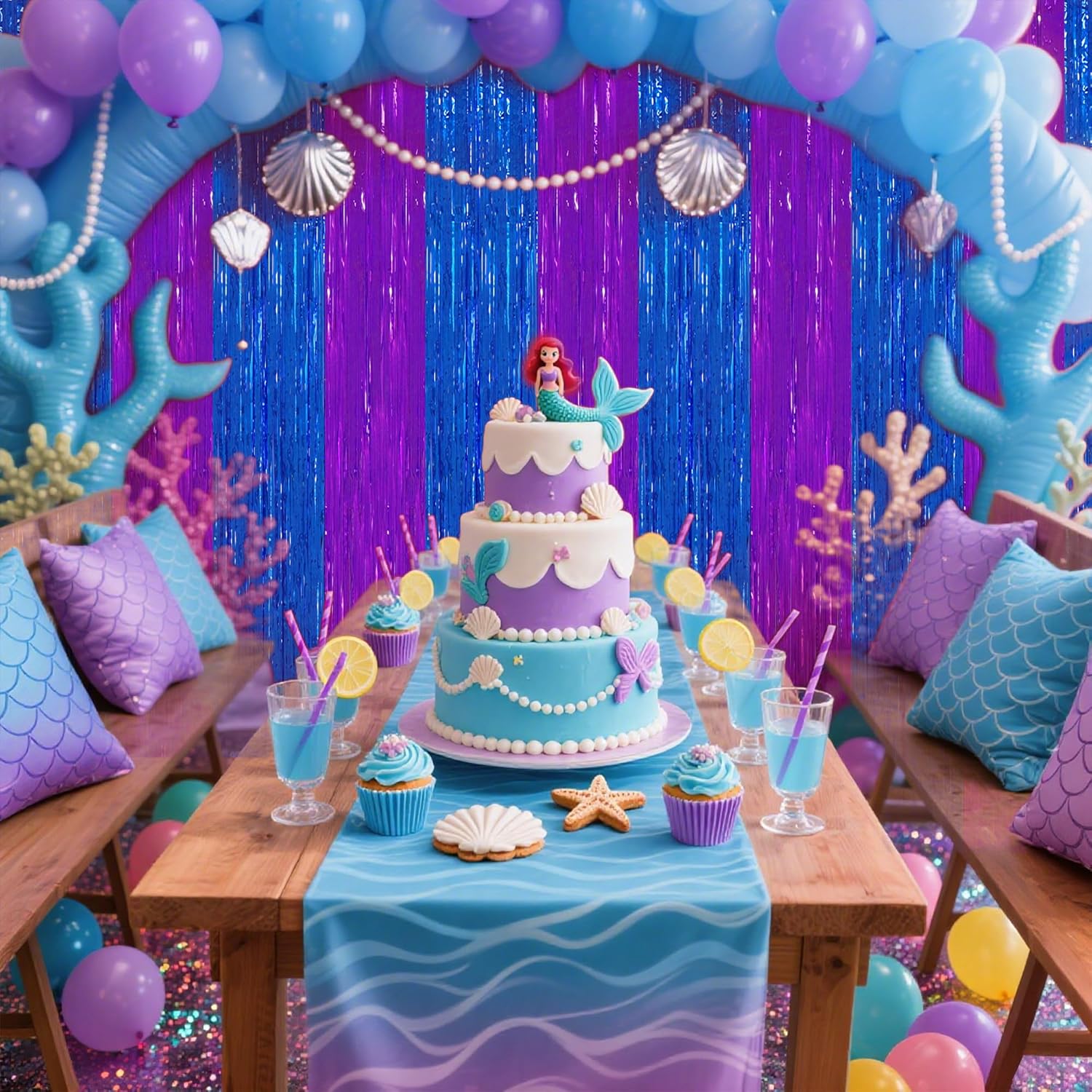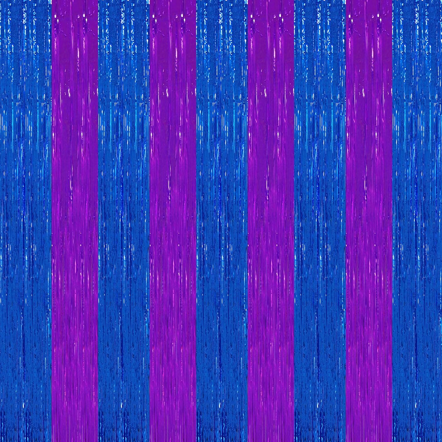 TONIFUL 2Pcs Blue Purple Door Streamers,Green Photo Booth Backdrop,Metallic Streamers Green Foil Fringe Curtains for Birthday,Christmas,New Year,St. Patrick's Day Party Streamers Decor